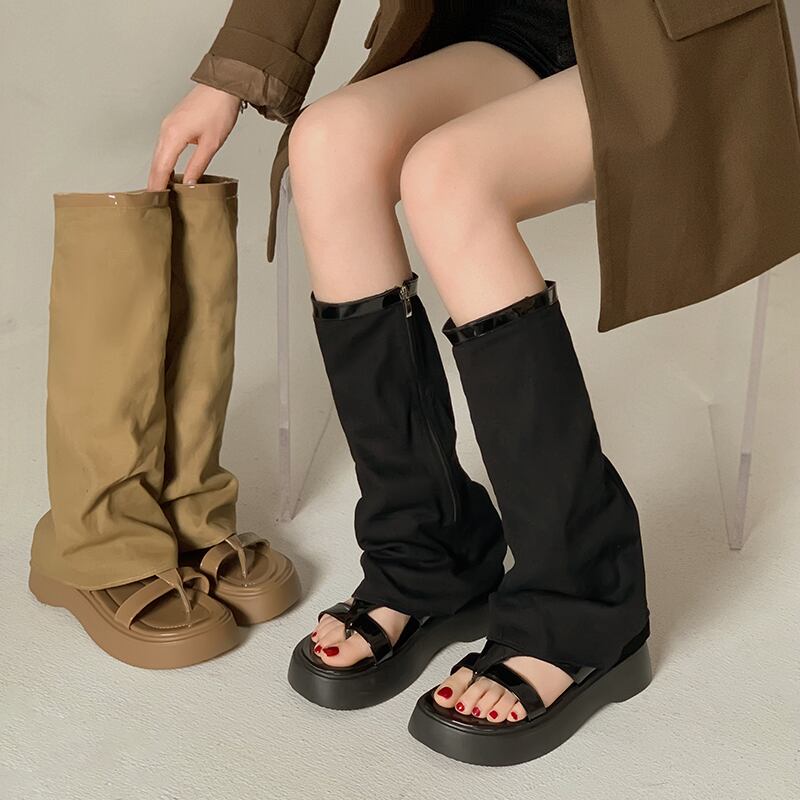 しかし、ニーブーツ レディース 2023 夏の新ファッションオールマッチレトロハンサム通気性厚底パンツチューブブーツサンダル 靴 シューズ サマー 夏物 jxjxf31140229853