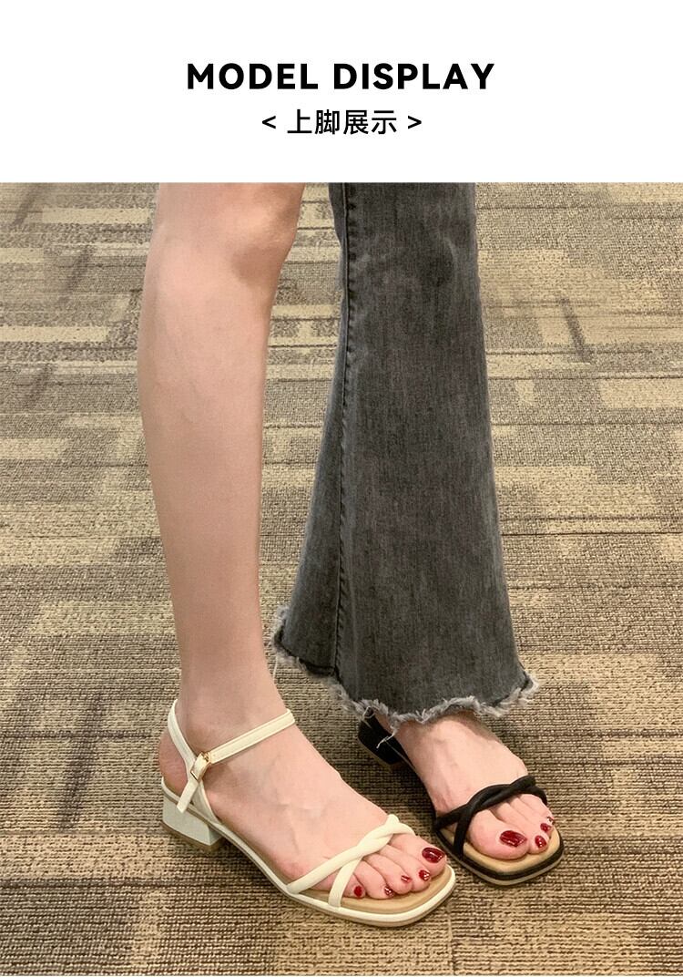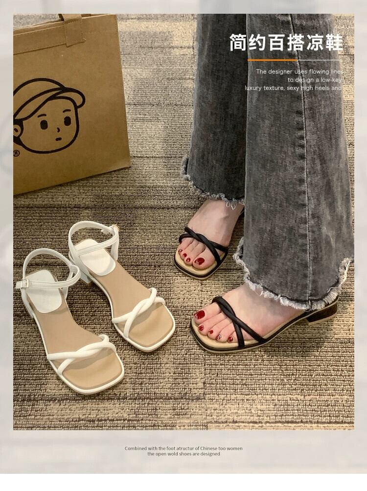 一言サンダルの女性の 2023 夏の新しいファッションオールマッチレトロなスタイルの小さな厚いかかとのローマの靴のトレンド シューズ サマー 夏物 jxjxf72393963944