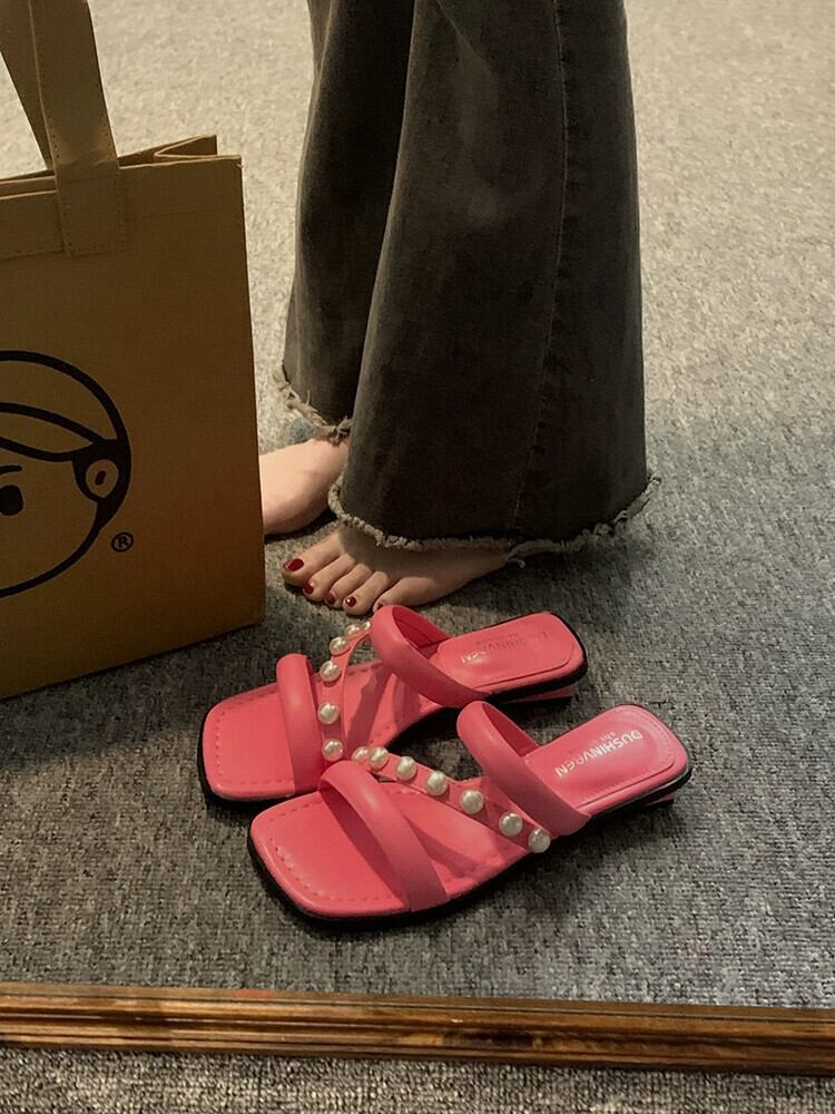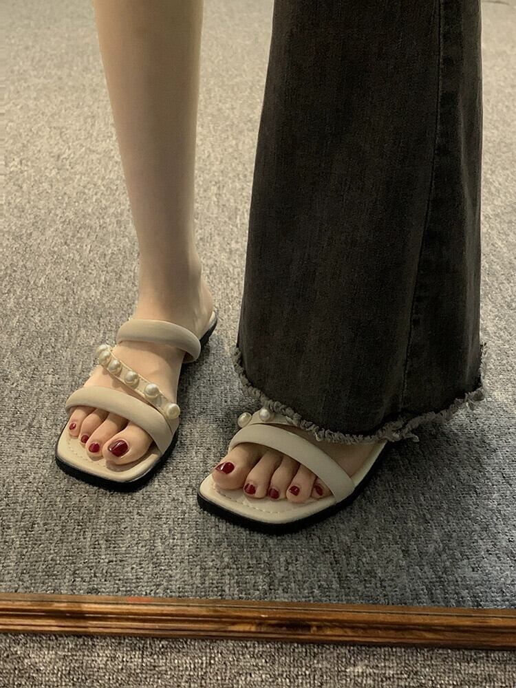 夏のお出かけスリッパレディース 2023 新フレンチウエスタンスタイルレトロパールローヒール comtable ワードサンダルとスリッパ ミュール 靴 シューズ サマー 夏物 真珠 jxjxf31136843537