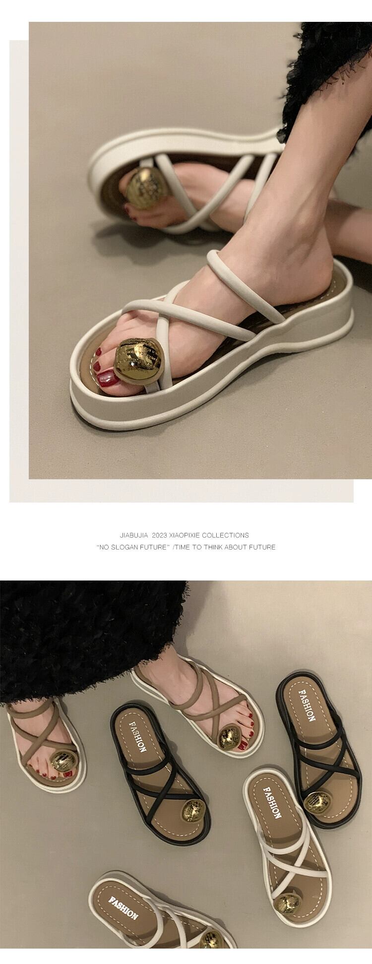 厚底スリッポンスリッパレディースお出かけ2023夏新作ファッションレトロシンプルカジュアルビーチサンダルとスリッパ ミュール 靴 シューズ サマー 夏物 jxjxf49902555653