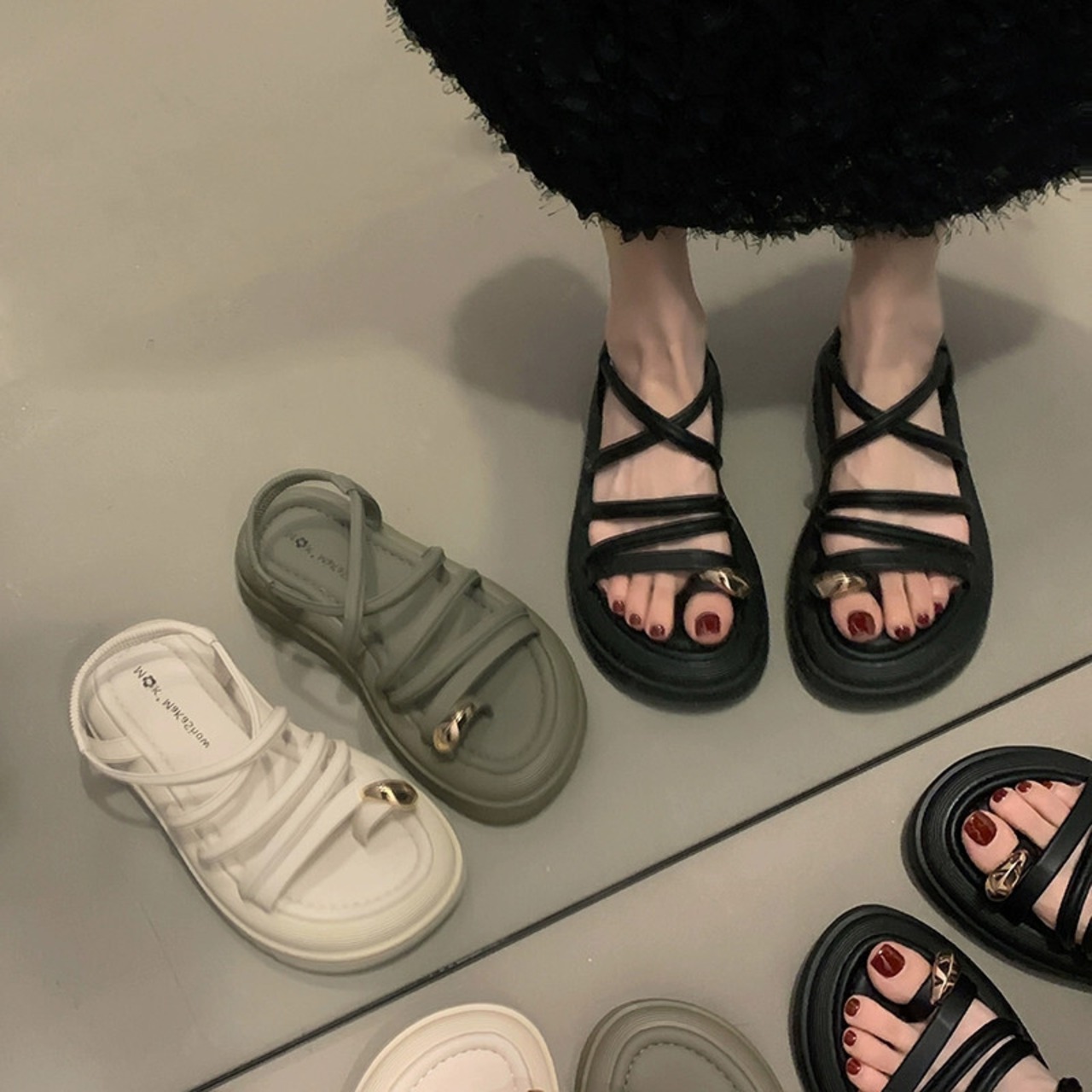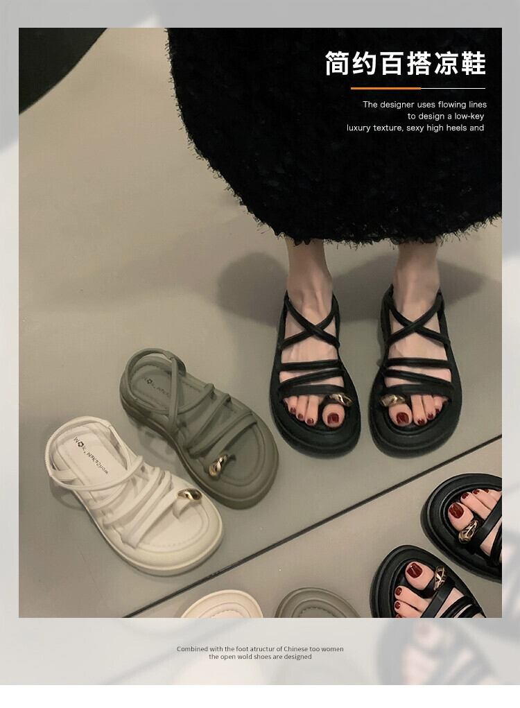 ローマンシューズ レディース 2023 夏新作 フレンチレトロ オールマッチ コンタブル 厚底 カジュアル セットトゥ ビーチサンダル 靴 サマー 夏物 jxjxf15858889518