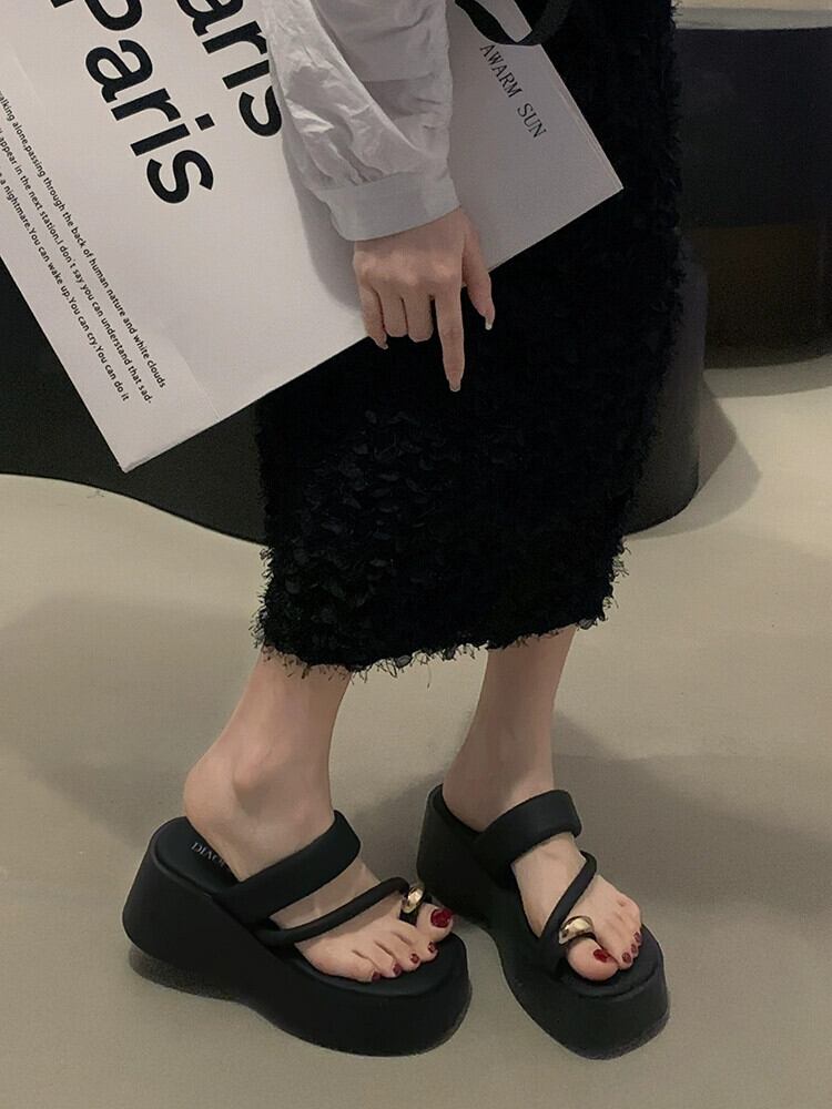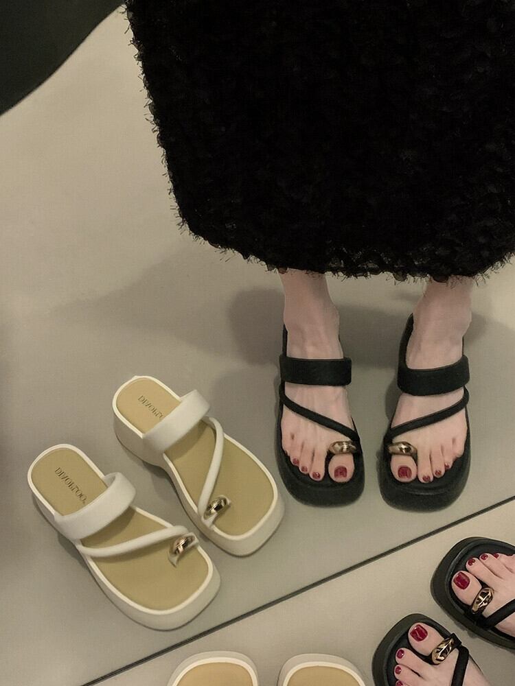 インターネットセレブスリッパレディースアウターウェア 2023 夏の新ファッションオールマッチアインスタイルメタルスリーブつま先厚底サンダルとスリッパトレンド ミュール 靴 シューズ サマー 夏物 jxjxf4552495461