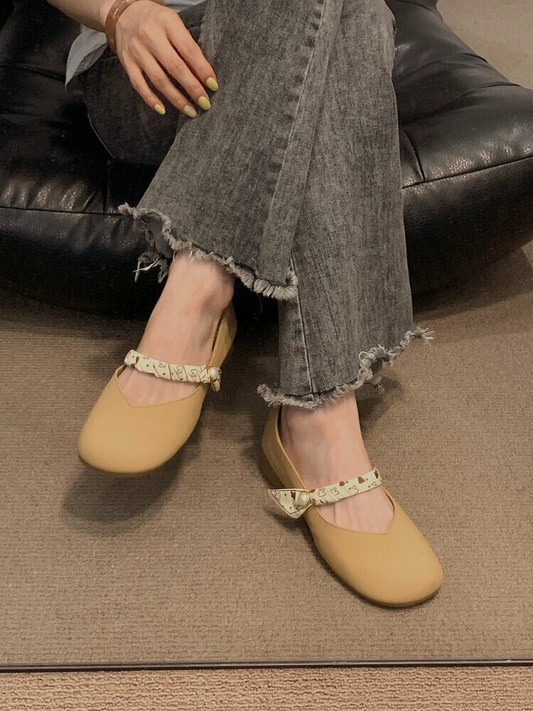 シングルシューズ女性の 2023 夏の新フレンチスタイルレトロ eign スタイルパール comtable チャンキーヒールメアリージェーン Doudou 靴 サマー 夏物 真珠 jxjxf44523253876