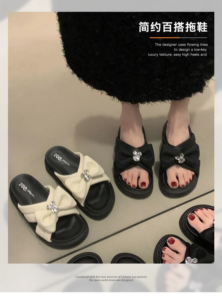 インターネットセレブスリッパレディースアウターウェア 2023 夏の新オールマッチアインスタイルラインストーンリボン厚底コンタブルビーチサンダル ミュール 靴 シューズ サマー 夏物 jxjxf86060377820