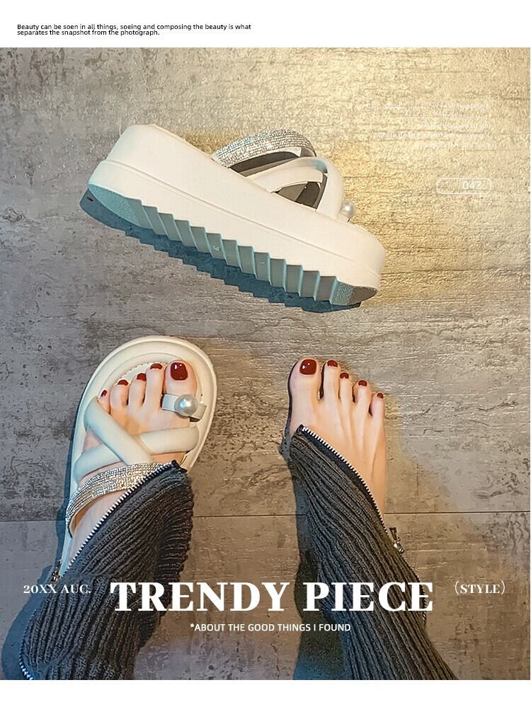 インターネットセレブスリッパ女性の 2023 夏の新しいスタイルのアウターウェアファッション eign スタイルラインストーンスポンジケーキ厚底セットつま先サンダルとスリッパ潮 ミュール 靴 シューズ サマー 夏物 jxjxf419630116