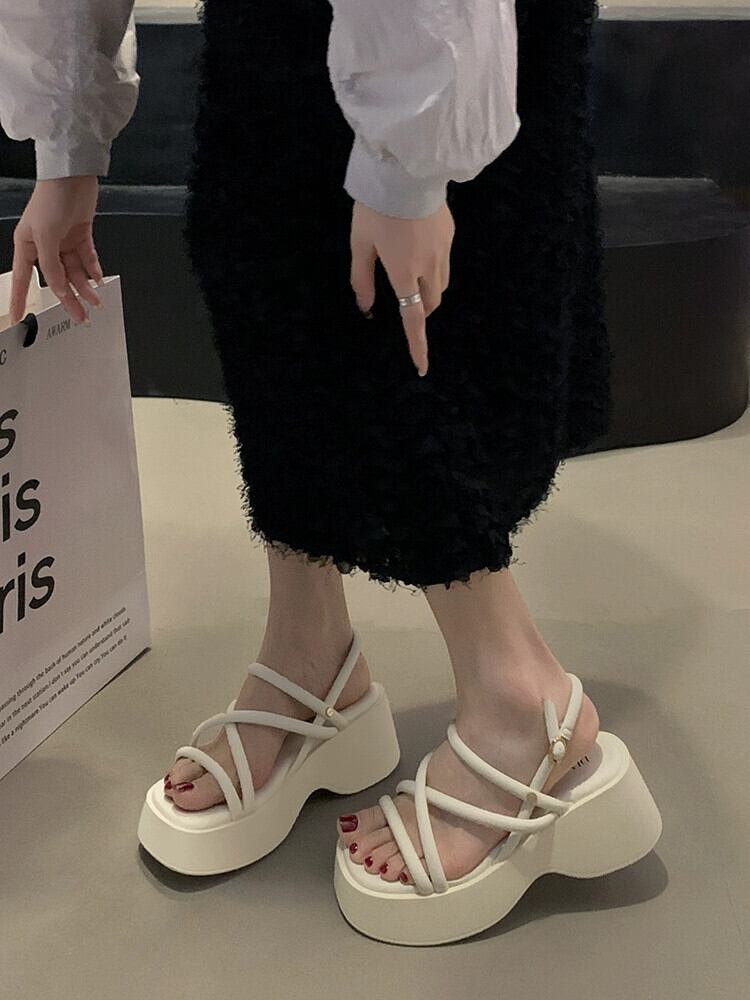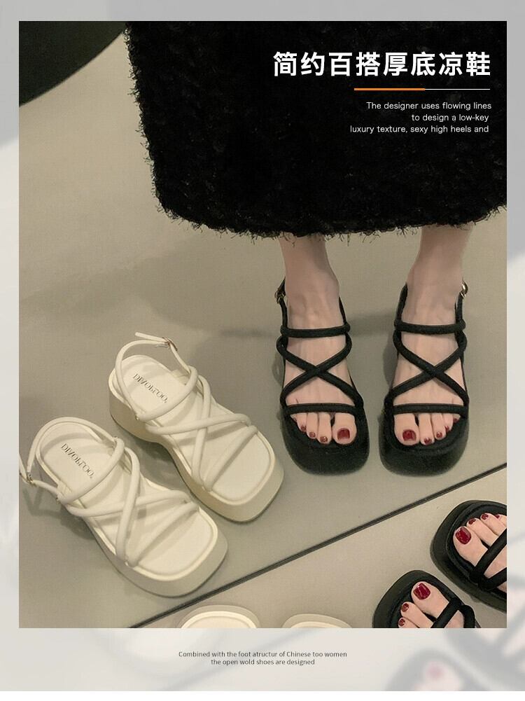 ローマサンダル女性の 2023 夏の新しいスーパーファッションオールマッチ小さなレトロな comtable 厚底ビーチシューズ 靴 サマー 夏物 jxjxf23848538075