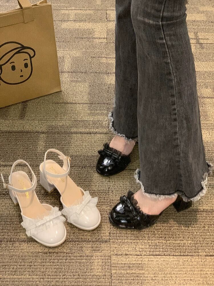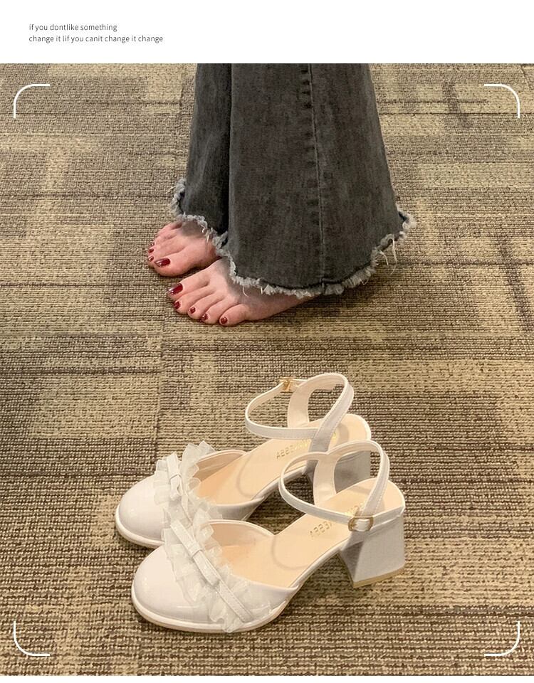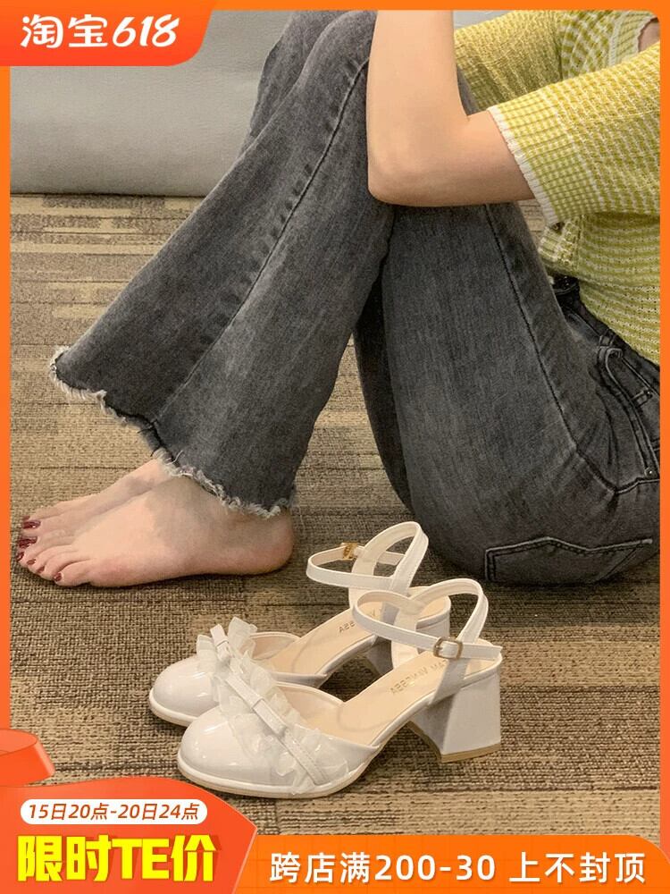 厚いヒール包頭サンダルの女性の 2023 夏の新フランスのレトロな優しい気質美しい妖精風ハイヒール 靴 シューズ サマー 夏物 jxjxf51911495736
