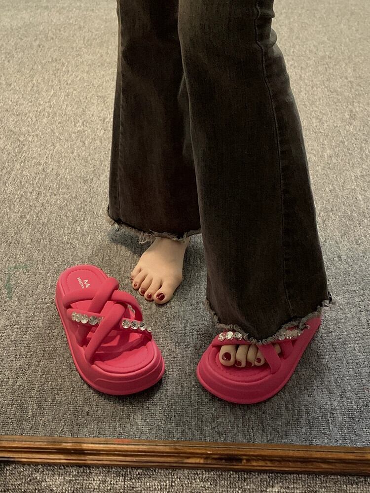 厚底一言スリッパレディースアウター 2023 夏の新ファッション eign スタイルラインストーンニッチ織りサンダルとスリッパ ミュール 靴 シューズ サマー 夏物 jxjxf92524748173