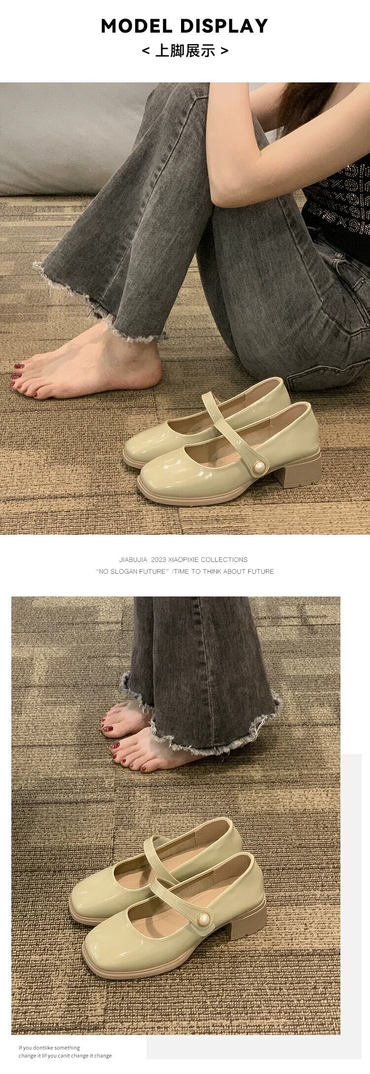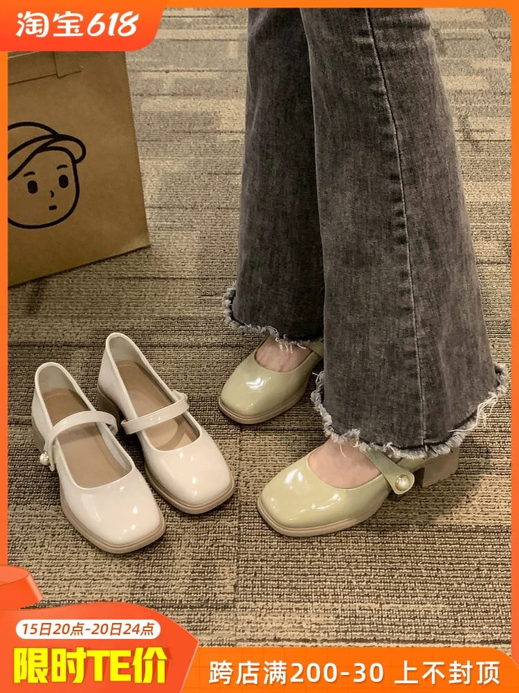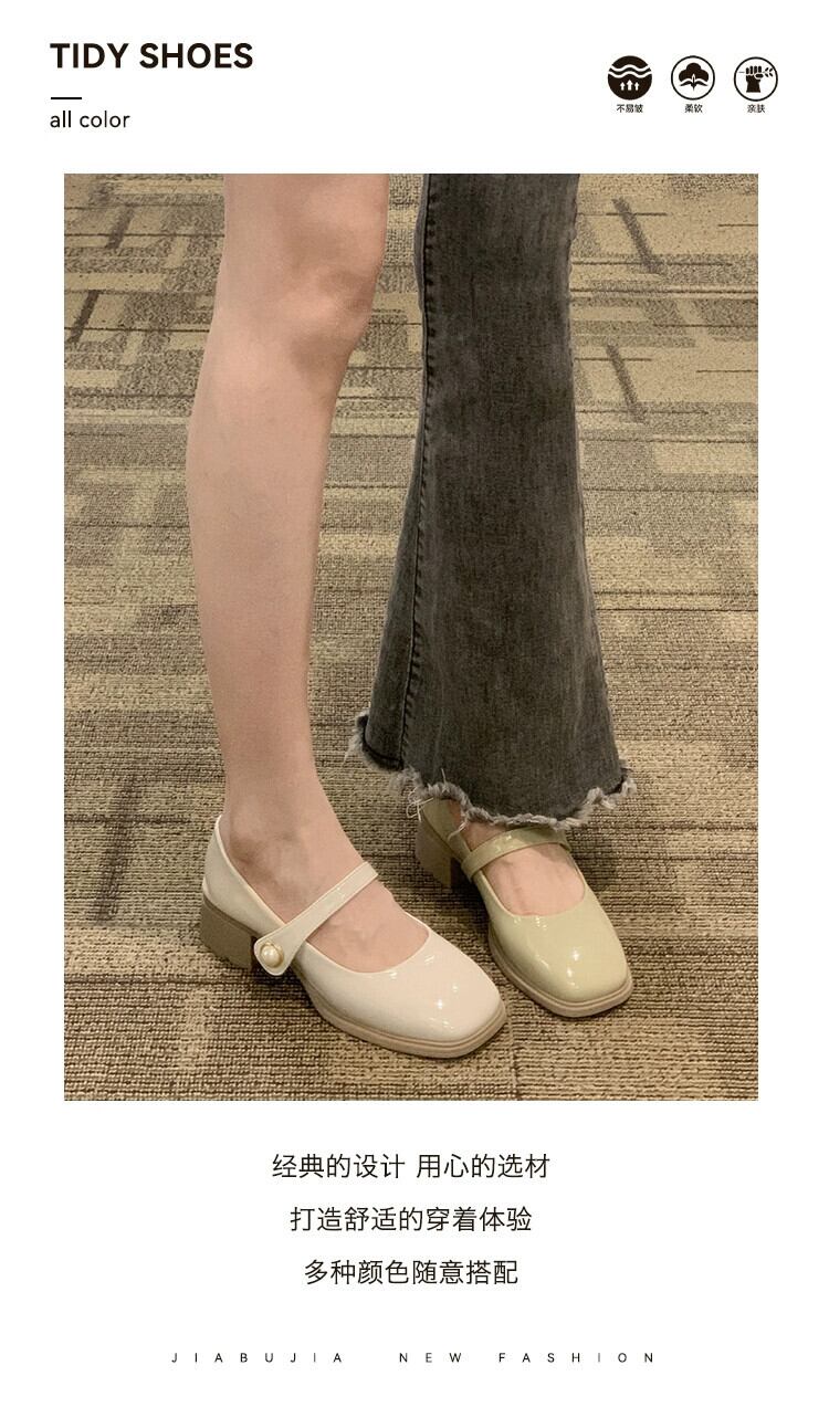 スクエアトゥの小さな革靴の女性の 2023 夏の新ファッションオールマッチ優しいレトロなチャンキーヒールとスカートメリージェーン靴 シューズ サマー 夏物 レザー スクウェア jxjxf75185887879