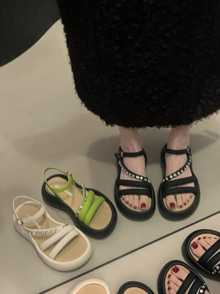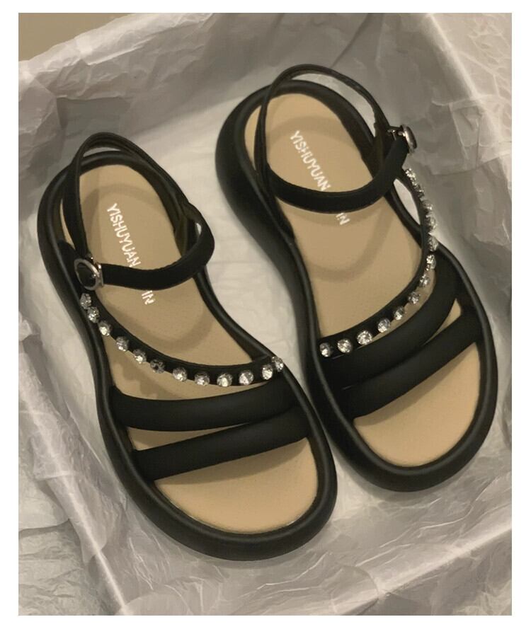 サンダル女性の夏の 2023 新しいファッションレトロラインストーン小さな厚底ノンスリップ comtable ビーチシューズ潮 靴 サマー 夏物 jxjxf67007158291