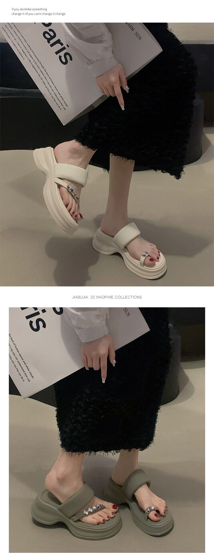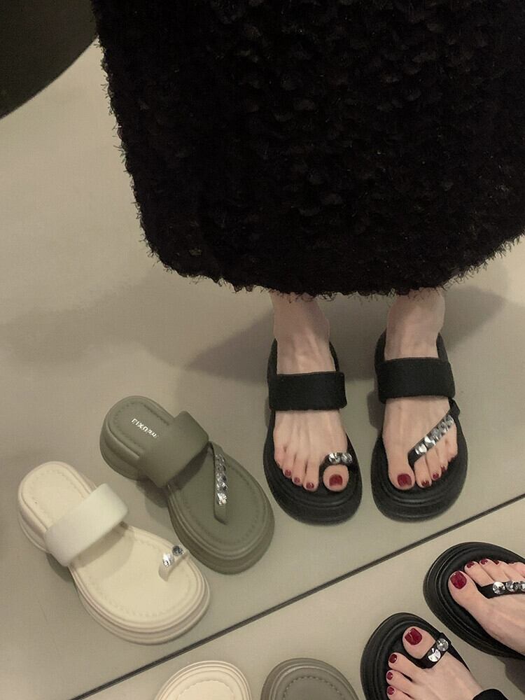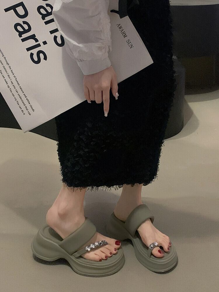 ネットセレブの厚底スリッパレディース 2023 夏の新作ファッションフレンチラインストーンシンプルな厚底サンダルとスリッパのトレンドを高める ミュール 靴 シューズ サマー 夏物 jxjxf98602250697