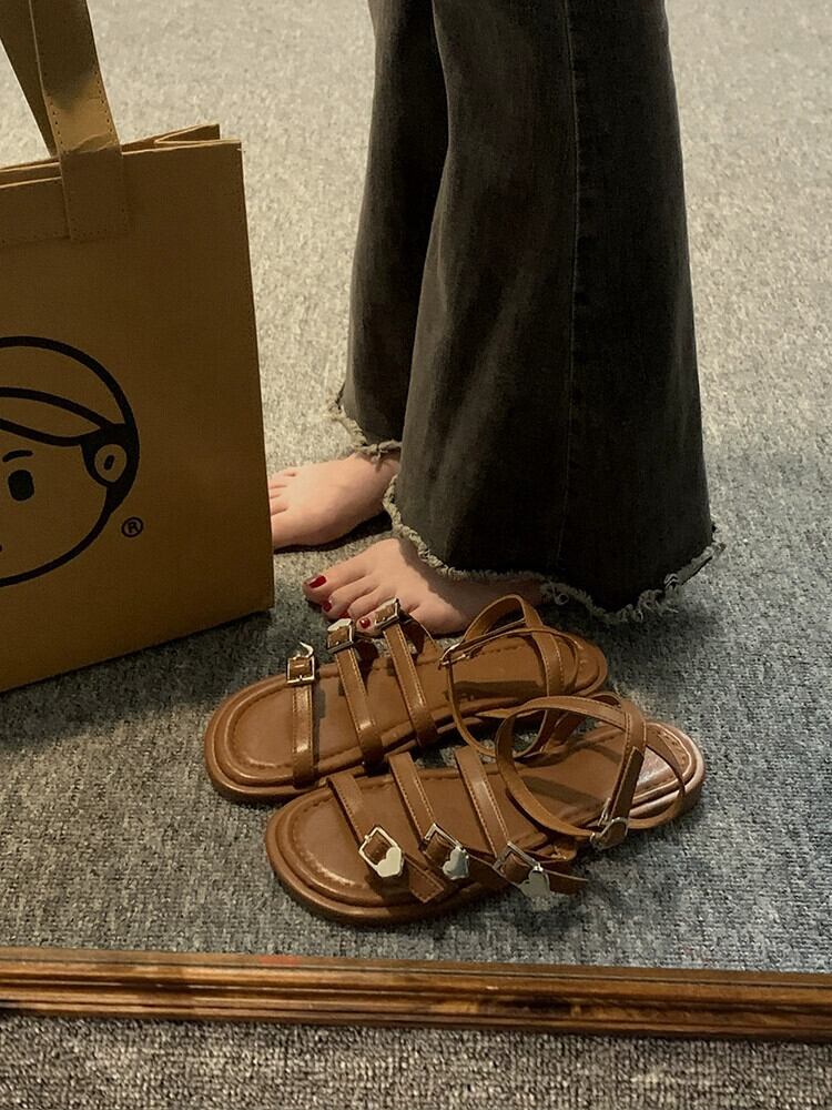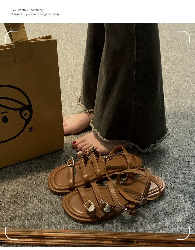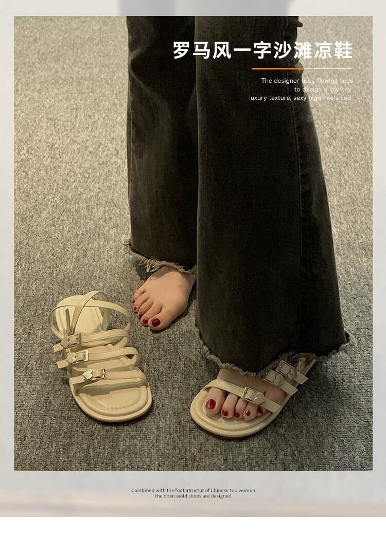 女性のローマンシューズ 2023 夏の新レトロベルトバックルフレンチ comtable ソフトボトムカジュアルビーチサンダル潮 靴 サマー 夏物 ハーネス jxjxf45617024243
