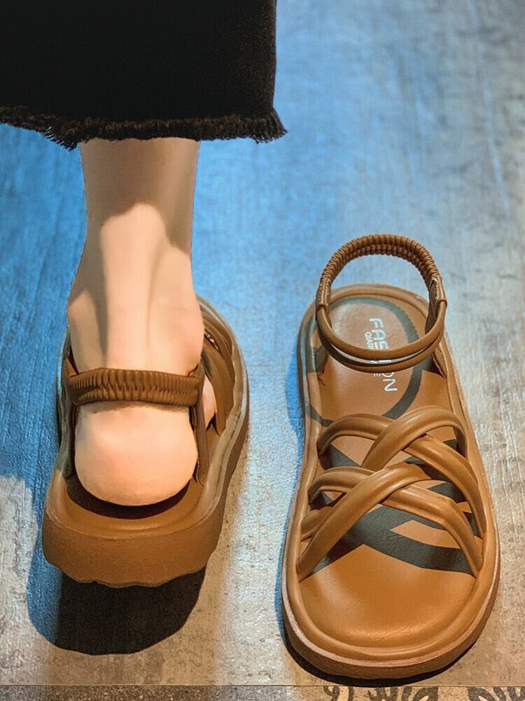 ローマンサンダルレディース 2023 夏の新ファッションオールマッチレトロウエスタンスタイル織りフラットノンスリップビーチシューズ潮 靴 サマー 夏物 jxjxf96496430197