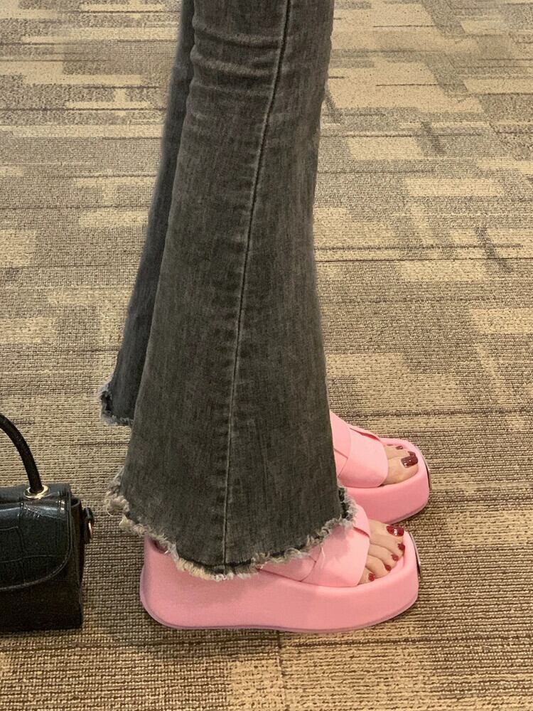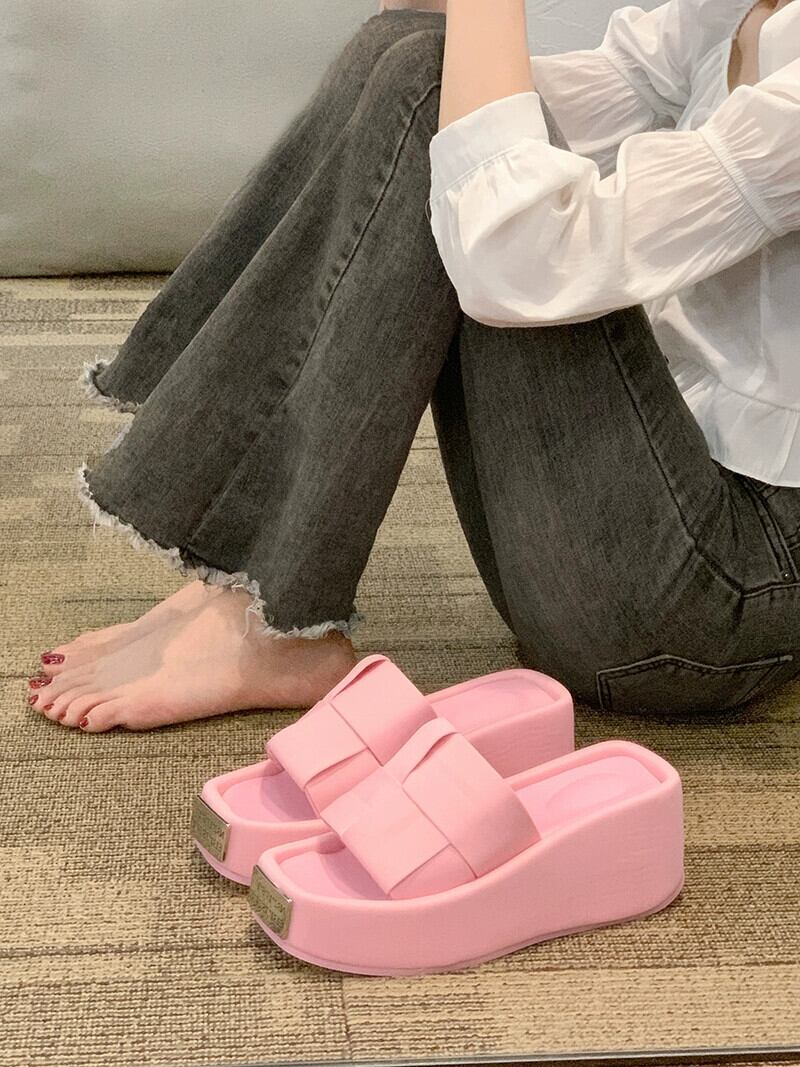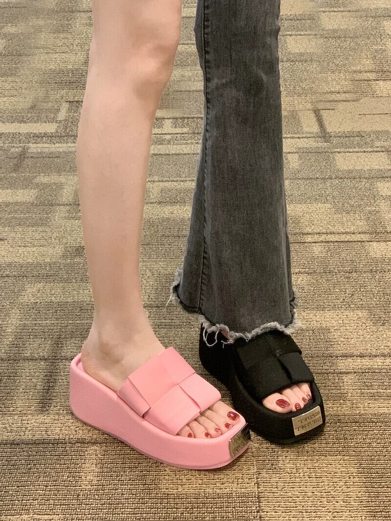 スロープヒールスリッパ女性の 2023 夏の新しいファッションシンプルな高められた小男オールマッチカジュアルサンダルとスリッパ ミュール 靴 シューズ サマー 夏物 jxjxf94612164083