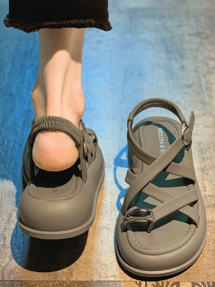 ローマサンダルレディース 2023 夏の新ネットレッドレトロオールマッチ小型快適厚底つま先ビーチシューズ 靴 サマー 夏物 jxjxf72253959265