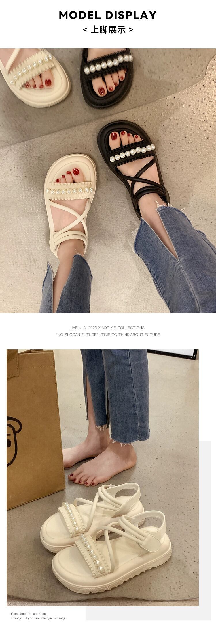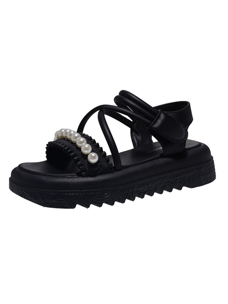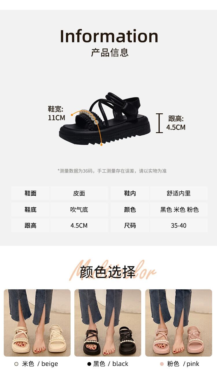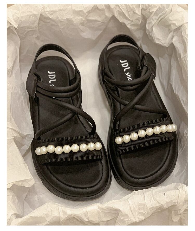 インターネットセレブサンダルの女性の 2023 夏の新ファッションオールマッチレトロパールベルクロ厚底アインスタイルローマンシューズ 靴 サマー 夏物 真珠 jxjxf81349260450