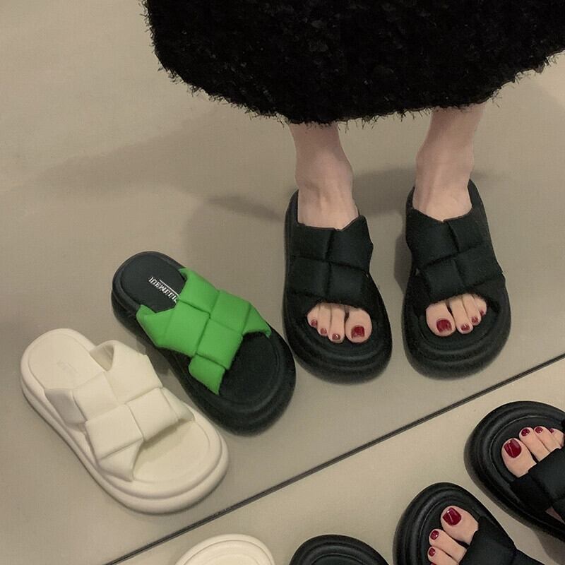 アウターウェア夏の女性の 2023 新しいファッションオールマッチレトロ織り小さな厚い底の快適なビーチサンダル サマー 夏物 jxjxf90696259193