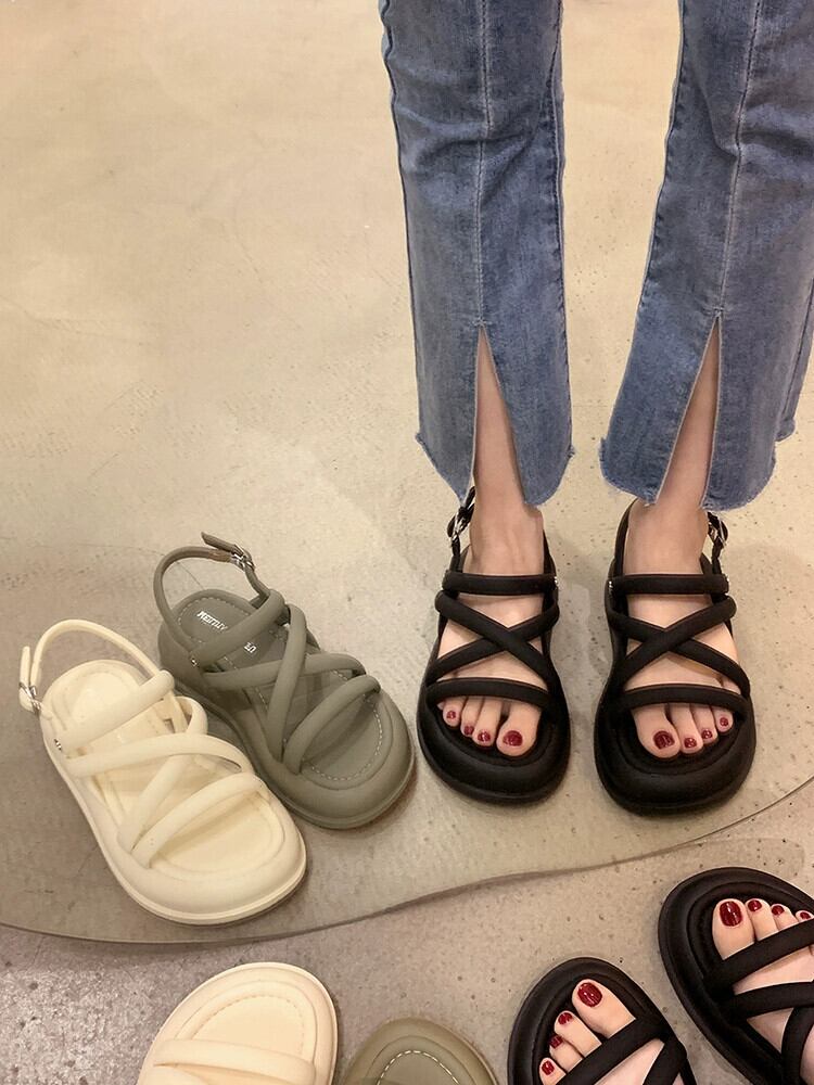 ローマンサンダルレディース 2023 夏の新ファッションオールマッチ学生厚底滑り止め快適カジュアルビーチシューズ潮 靴 サマー 夏物 jxjxf66642711138