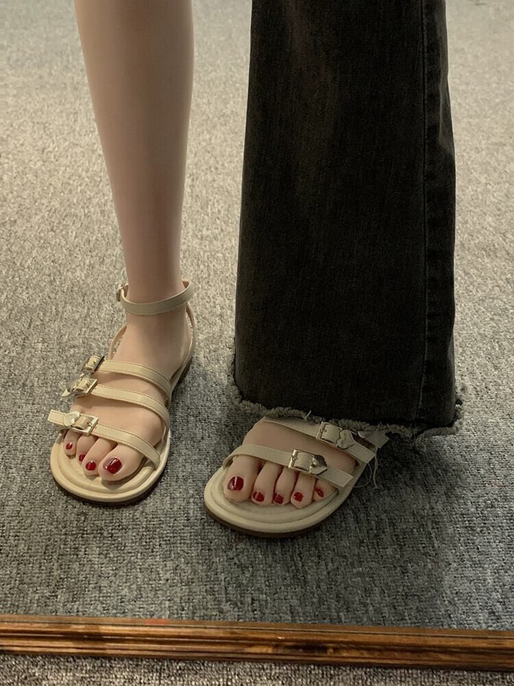 靴の女性のサンダル 2023 夏の新ファッションオールマッチレトロ eign スタイル平底ノンスリップ comtable ローマンシューズ潮 サマー 夏物 jxjxf84621914288