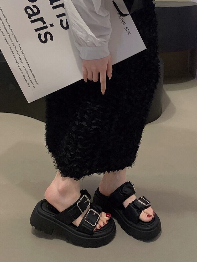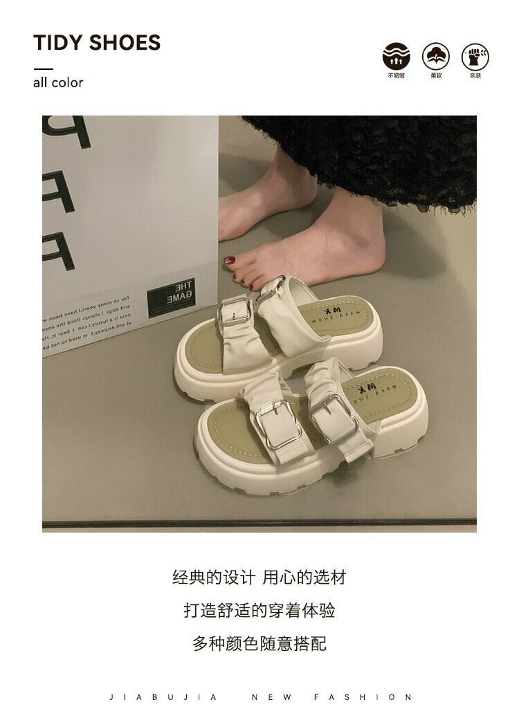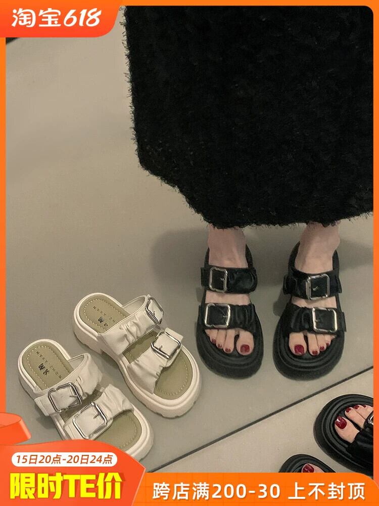 お出かけスリッパ女性の夏の 2023 新しいファッションオールマッチベルトバックル厚底カジュアル滑り止めワードサンダルとスリッパ ミュール 靴 シューズ サマー 夏物 ハーネス jxjxf25367336572