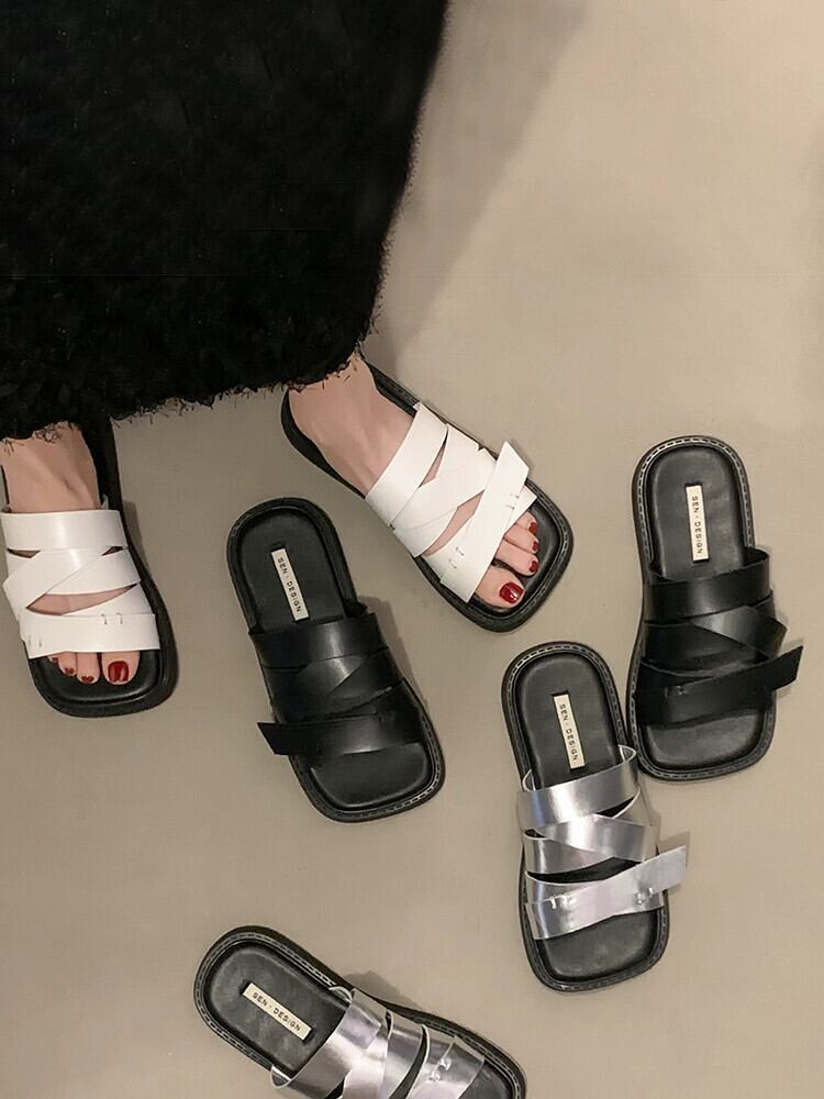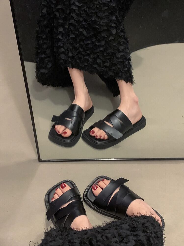夏のアウターウェアの女性のスリッパ女性の 2023 新しいファッションオールマッチレトロシンプルな織りソフトボトムコンタブルワードサンダル ミュール 靴 シューズ サマー 夏物 jxjxf68832640368