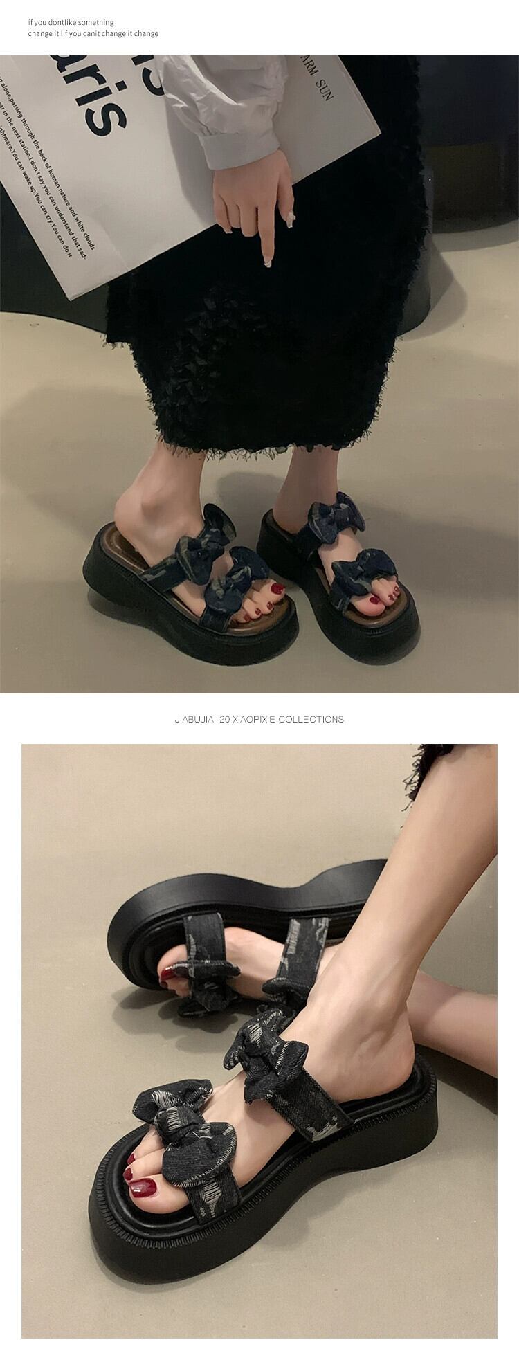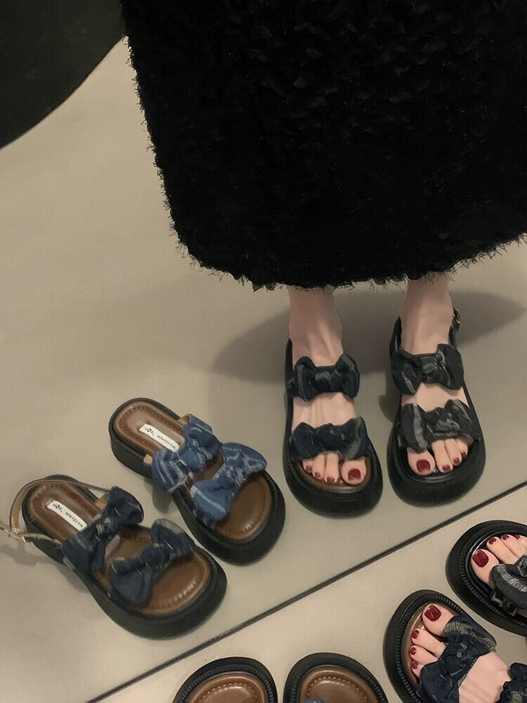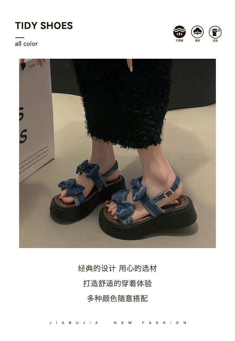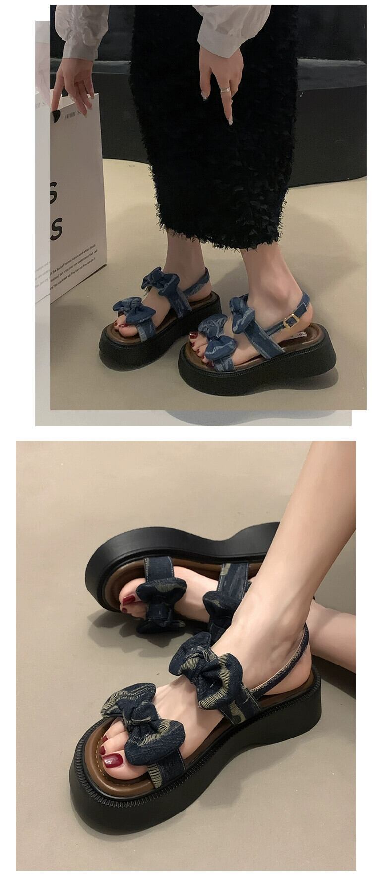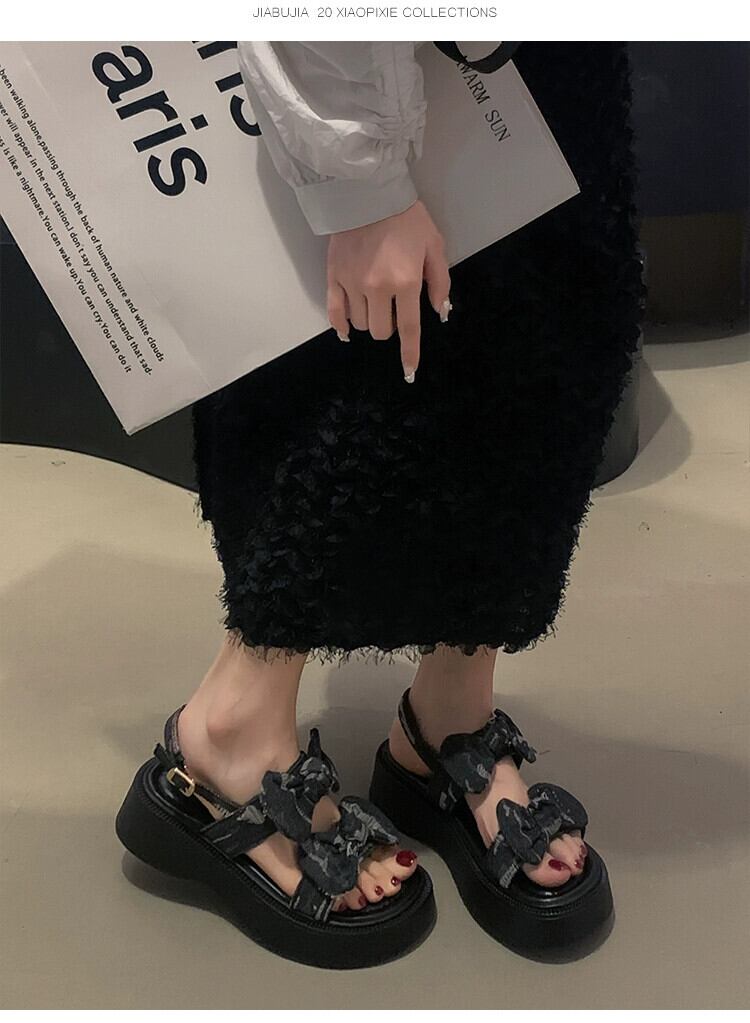 サンダル女性の 2023 夏の新ファッションオールマッチレトロ西洋スタイルの弓厚底ノンスリップビーチシューズ潮 靴 リボン サマー 夏物 jxjxf75226357351