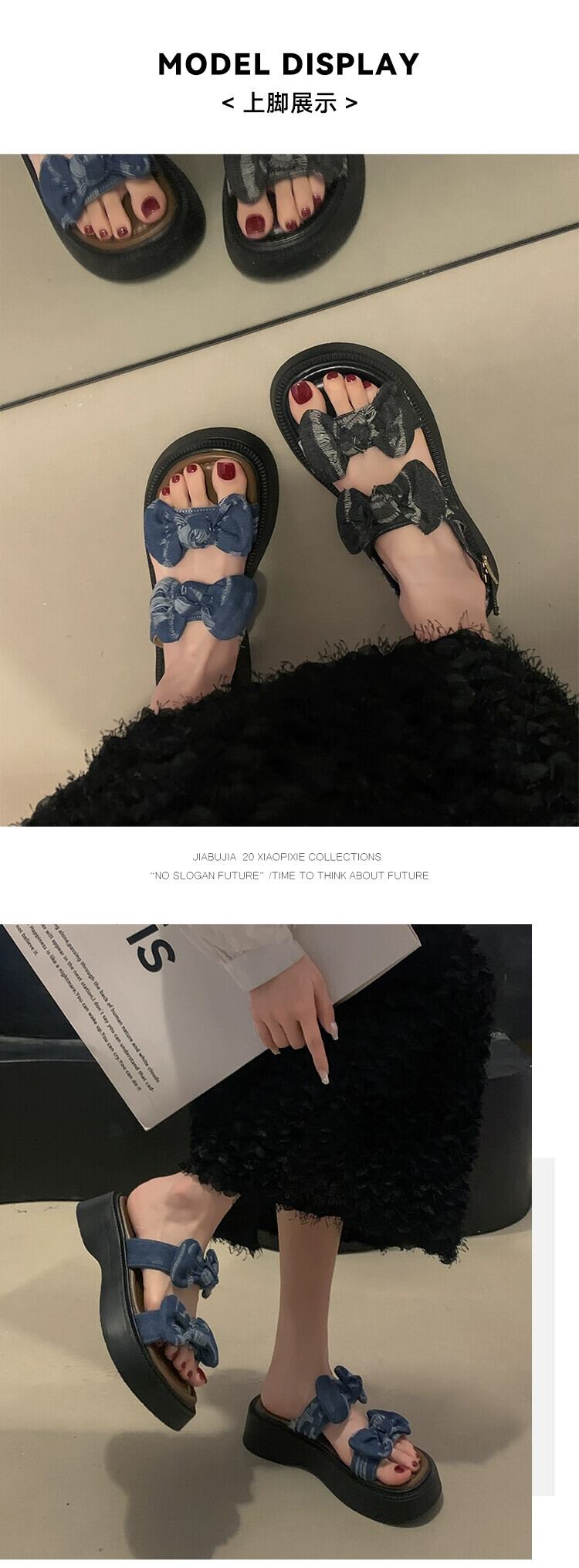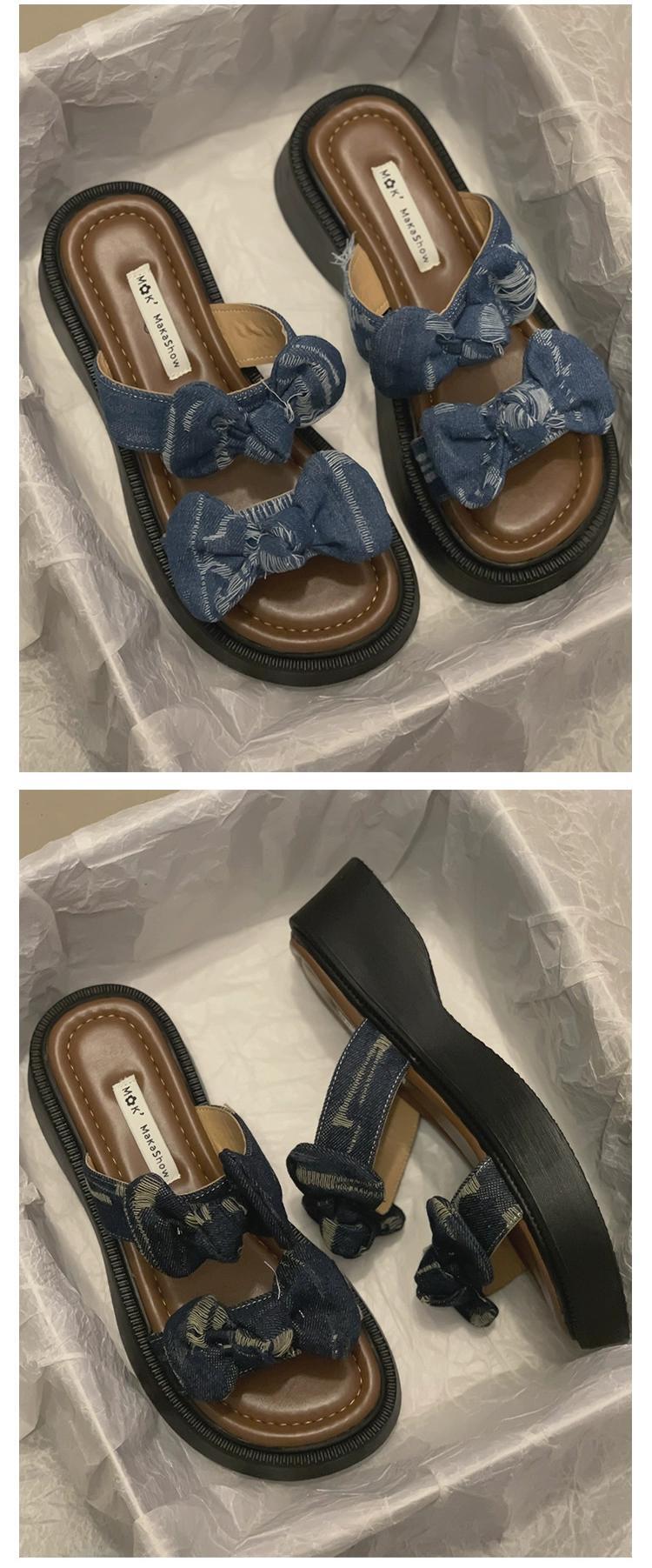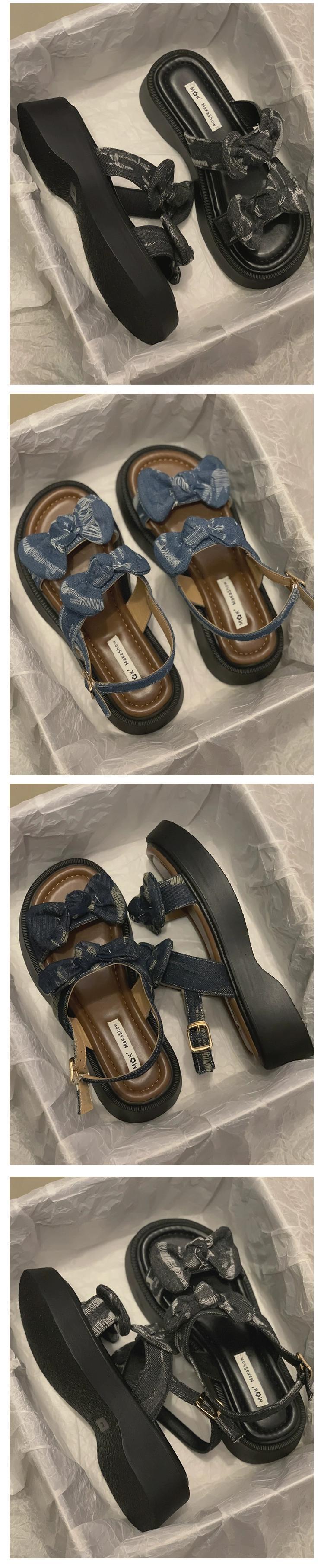サンダル女性の 2023 夏の新ファッションオールマッチレトロ西洋スタイルの弓厚底ノンスリップビーチシューズ潮 靴 リボン サマー 夏物 jxjxf75226357351