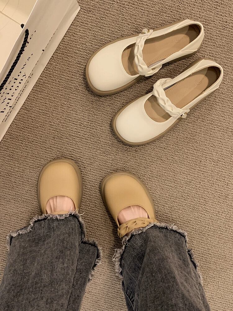 ese シングルシューズの女性の 2023 夏の新ファッションオールマッチ優しいレトロなラウンドトゥ平底 comtable 小さな革靴潮 サマー 夏物 ラウンドトー レザー jxjxf56952153236