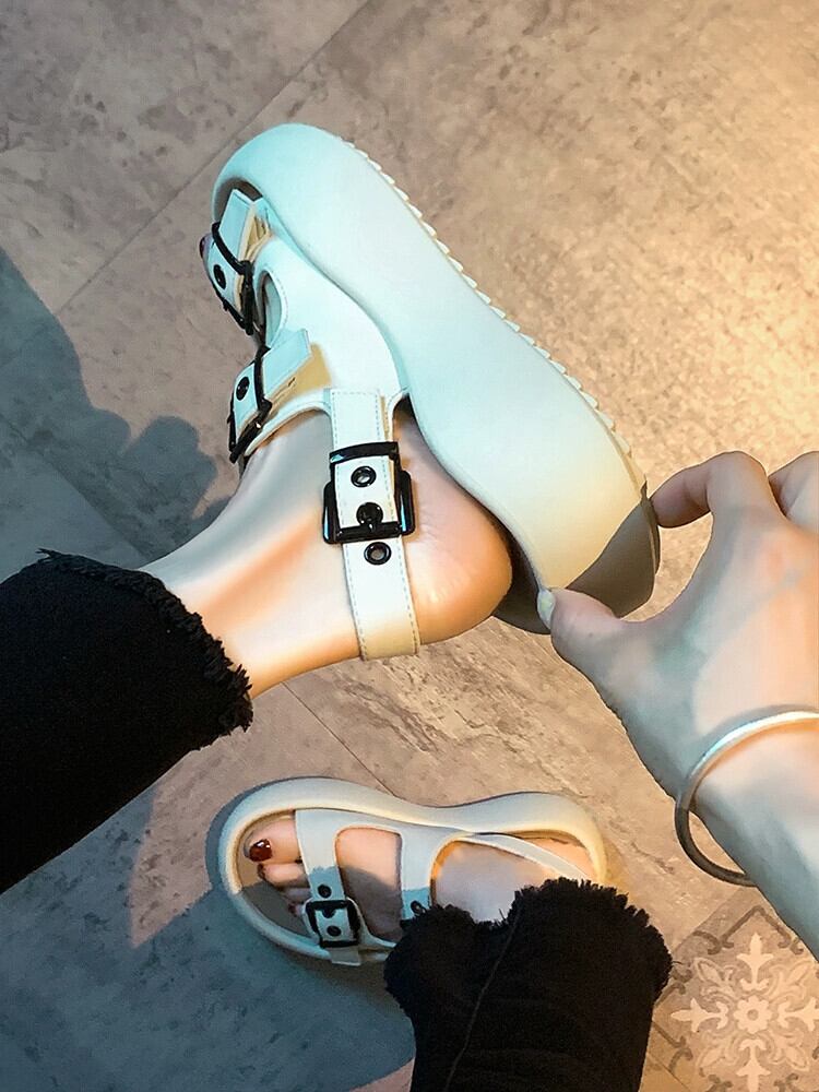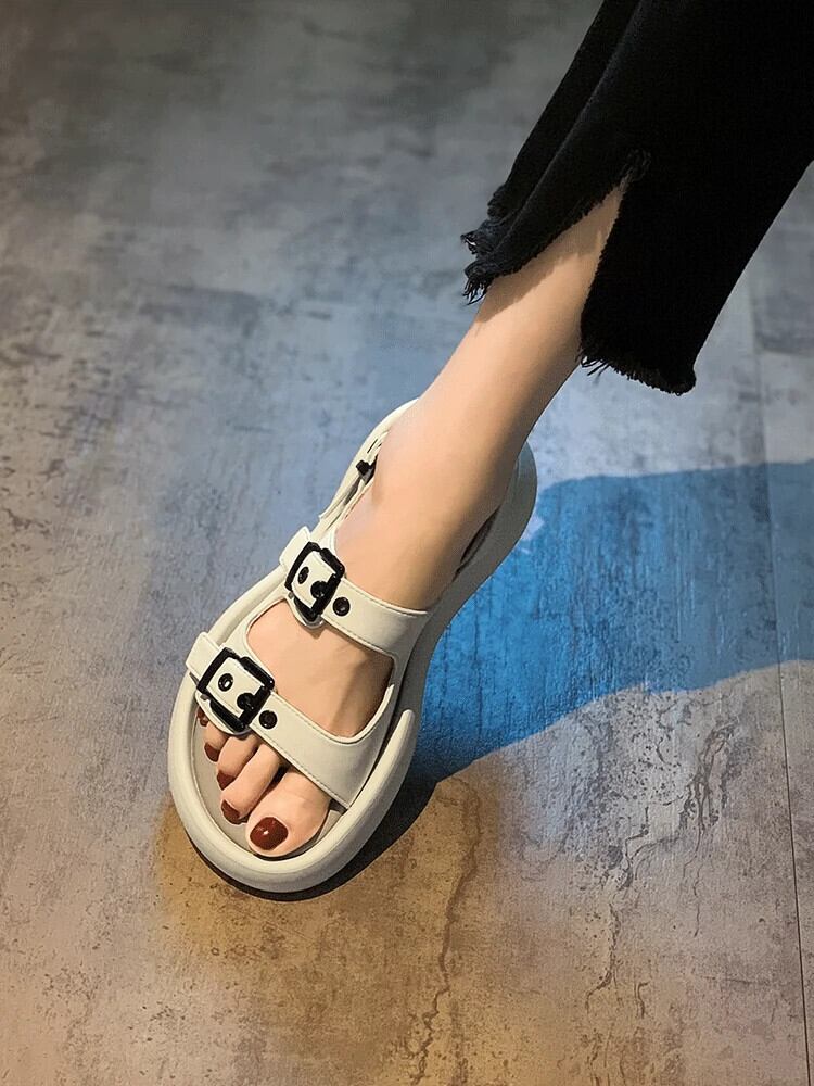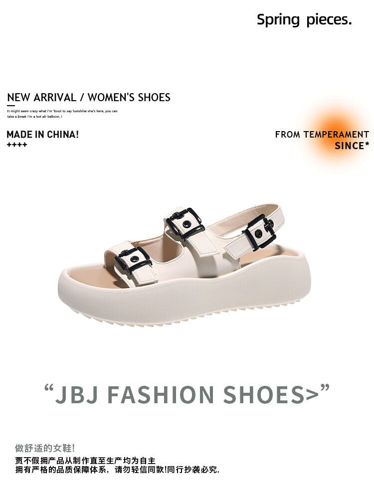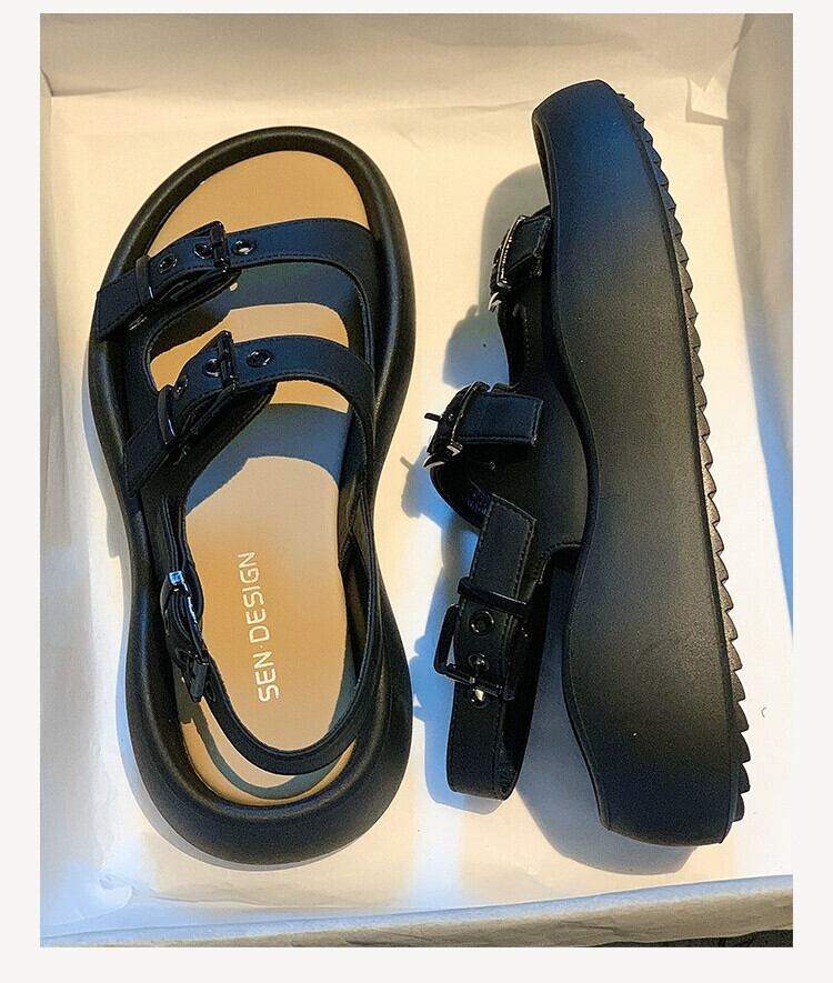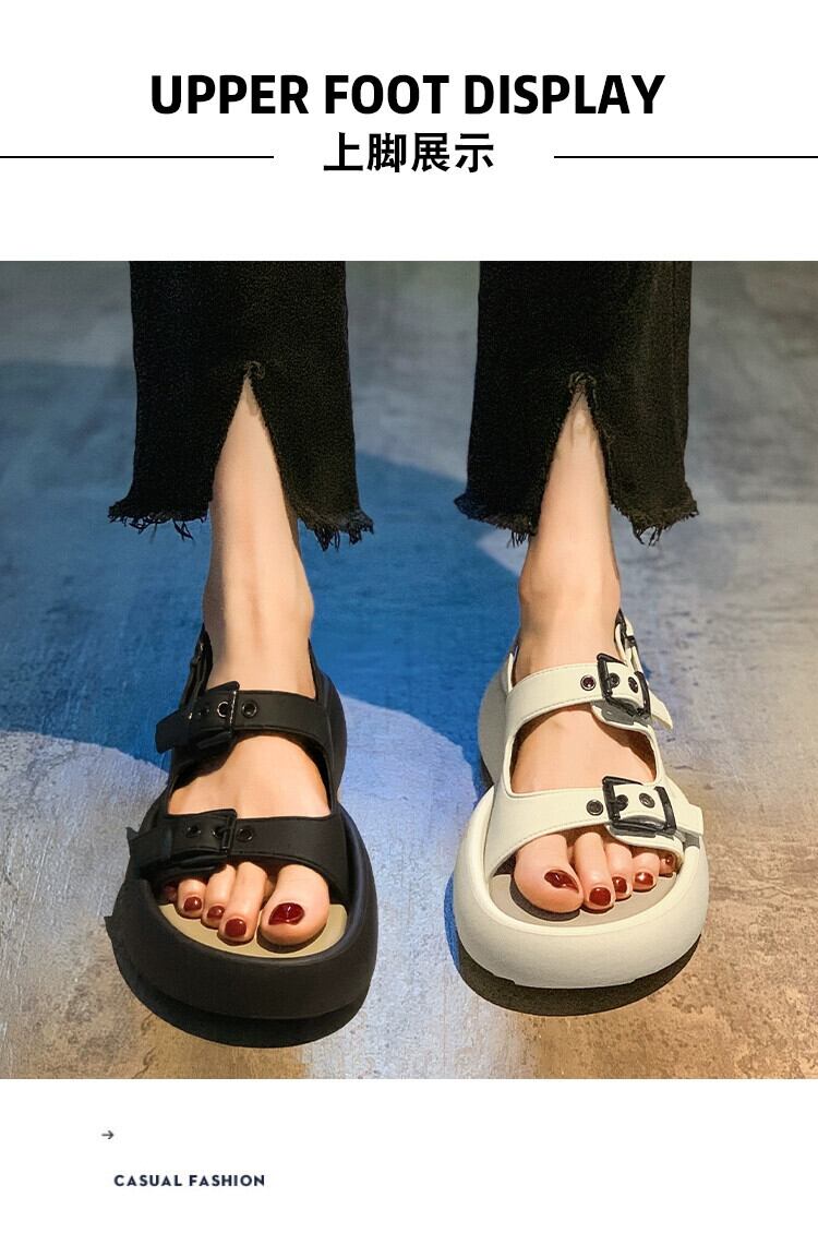 厚底カジュアルサンダル女性の 2023 夏の新ファッションフレンチレトロオールマッチベルトバックル comtable ビーチシューズ 靴 サマー 夏物 ハーネス jxjxf58915499072