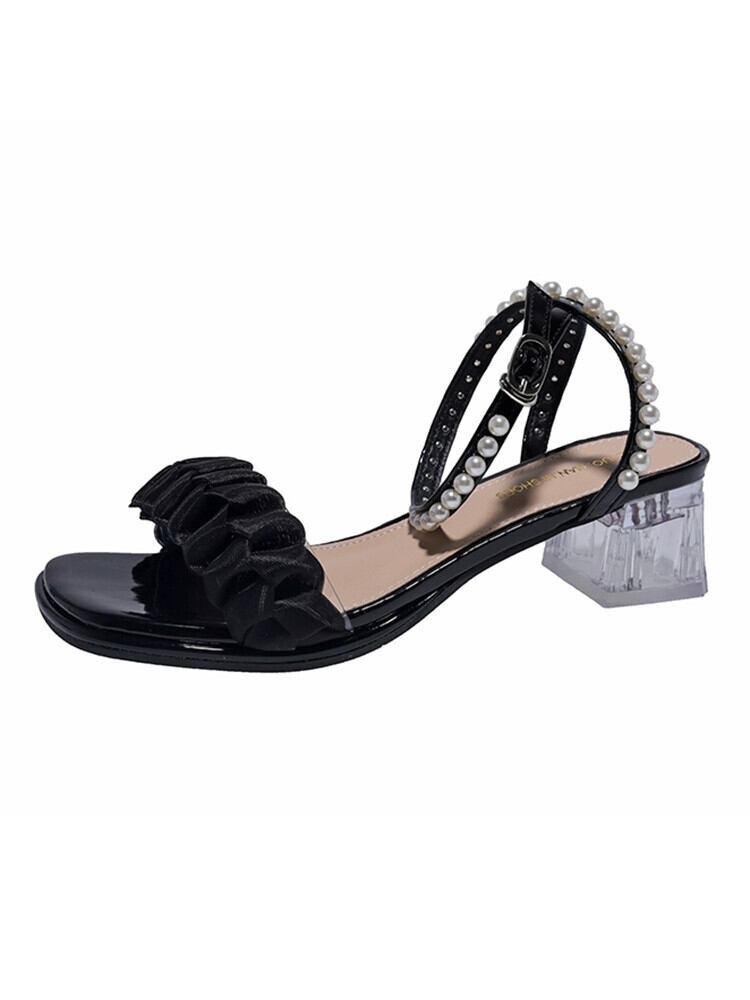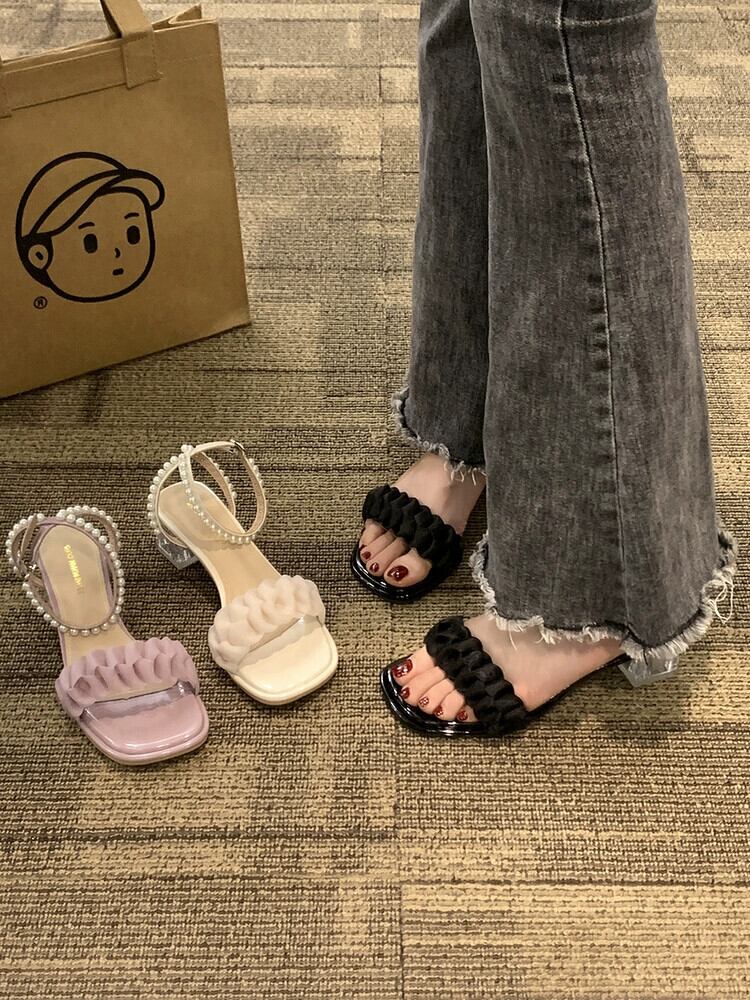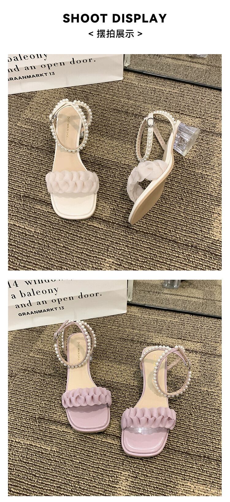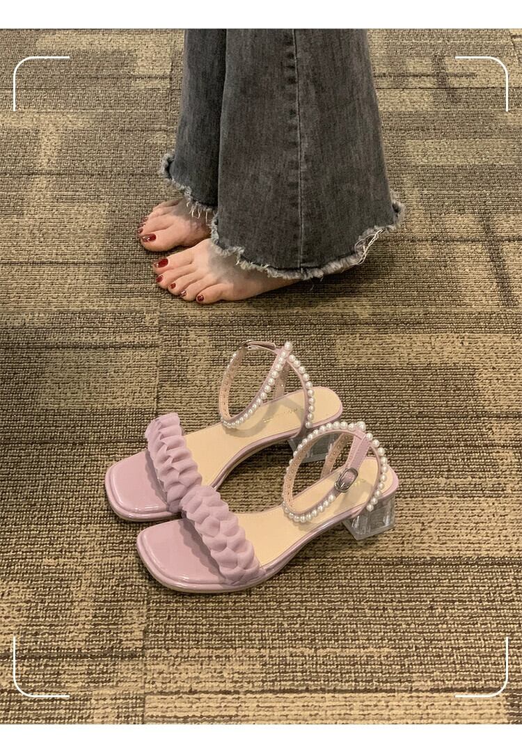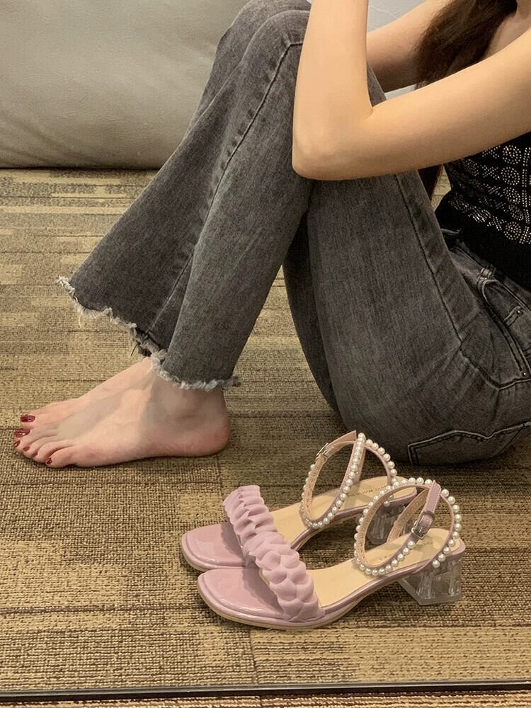 女性のサンダル 2023 夏の新ファッションオールマッチフェアリースタイルレトロパールチャンキーヒールローマンシューズトレンド 靴 サマー 夏物 真珠 jxjxf80687351573