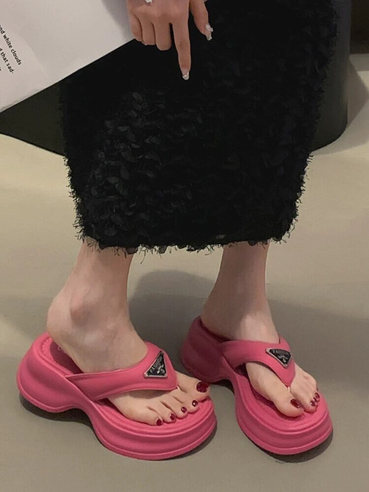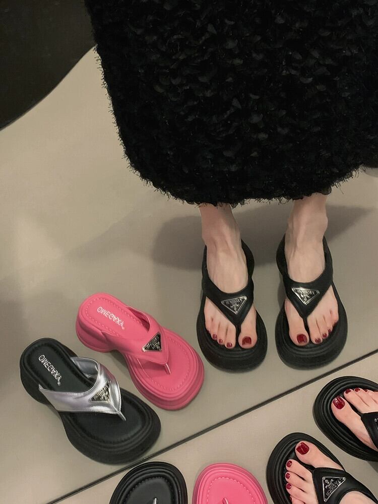 インターネット赤外線着用ビーチサンダル女性の 2023 夏の新しいシンプルなファッションオールマッチ厚底カジュアルビーチサンダル レッド 靴 シューズ サマー 夏物 jxjxf64189659630