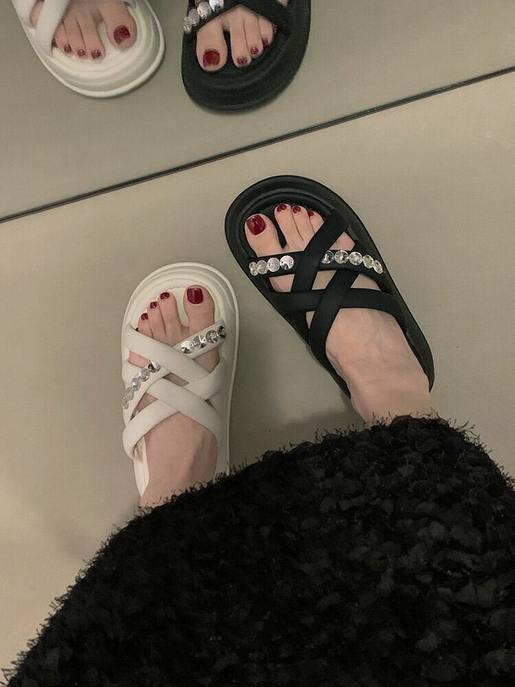 女性のスリッパアウターウェア 2023 夏の新ファッションオールマッチ eign スタイルのラインストーン小さな厚底 comtable サンダル ミュール 靴 シューズ サマー 夏物 jxjxf76997042799