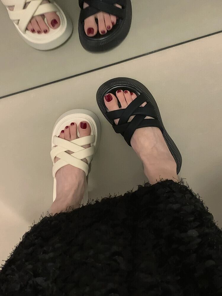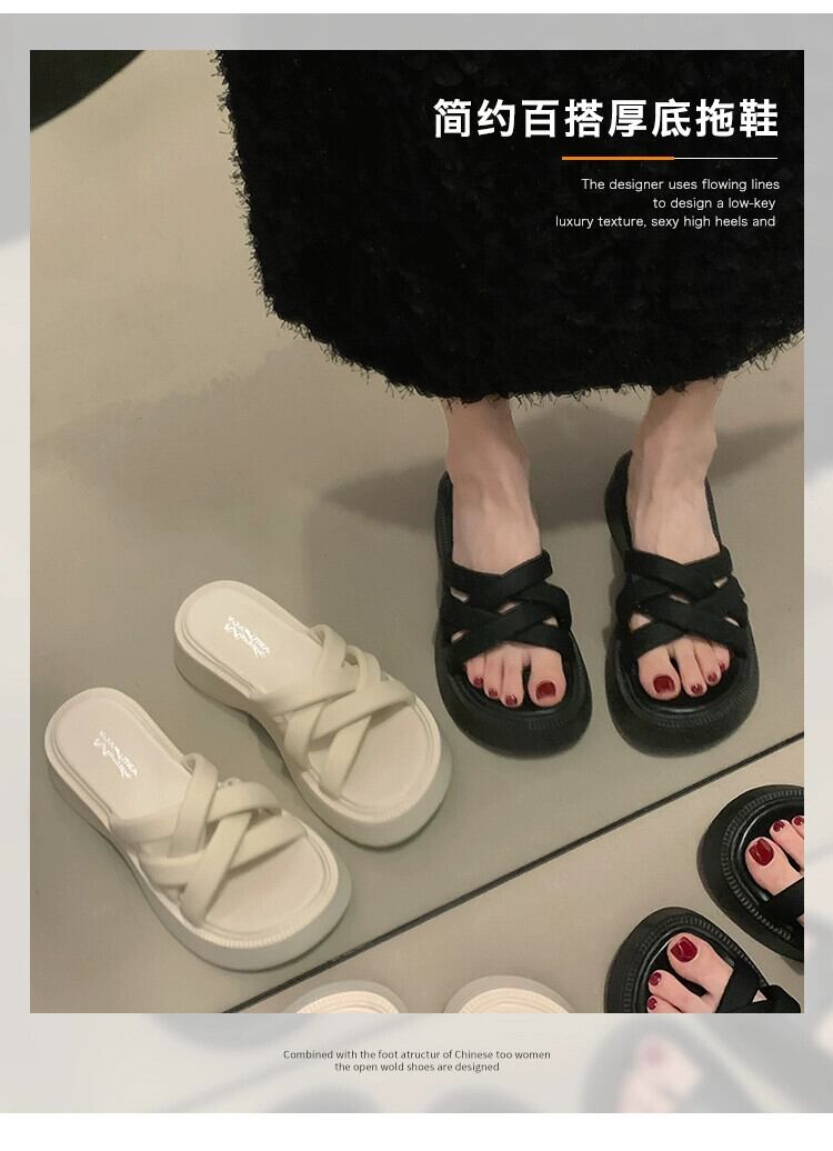 アウターウェア夏の女性の 2023 新しいファッションオールマッチ織物快適な厚底滑り止めカジュアルサンダルとスリッパ ミュール 靴 シューズ サマー 夏物 jxjxf89665693268