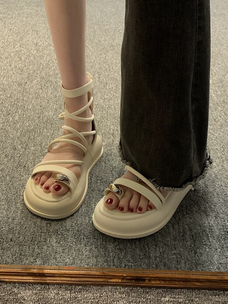 ネットセレブサンダルレディース 2023 夏の新ファッションオールマッチアインスタイルメタルスリーブトゥ厚底カジュアルローマンシューズトレンド 靴 サマー 夏物 jxjxf94013056876