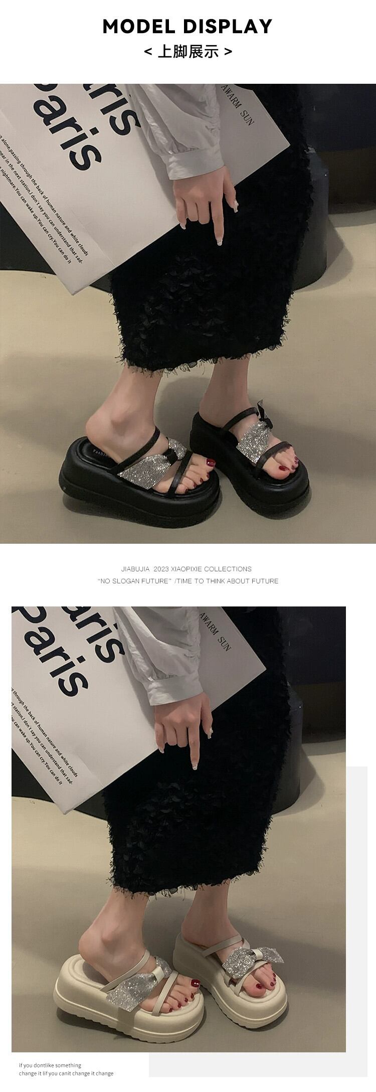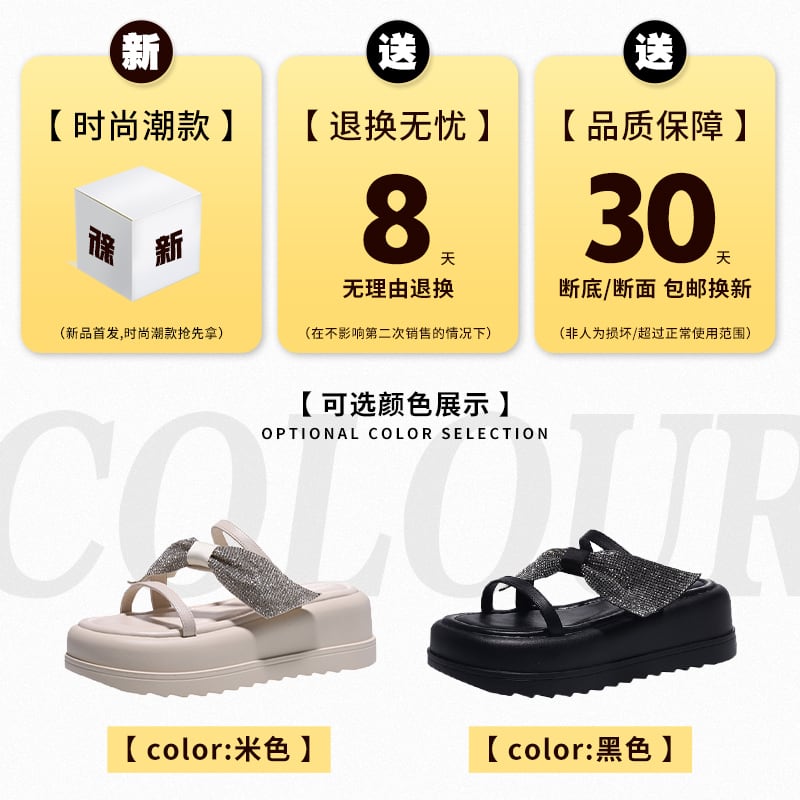 オープントゥスリッパレディース夏アウター 2023 新しい妖精ラインストーン気質マフィン厚底カジュアルサンダルとスリッパトレンド ミュール 靴 シューズ サマー 夏物 jxjxf46535476644