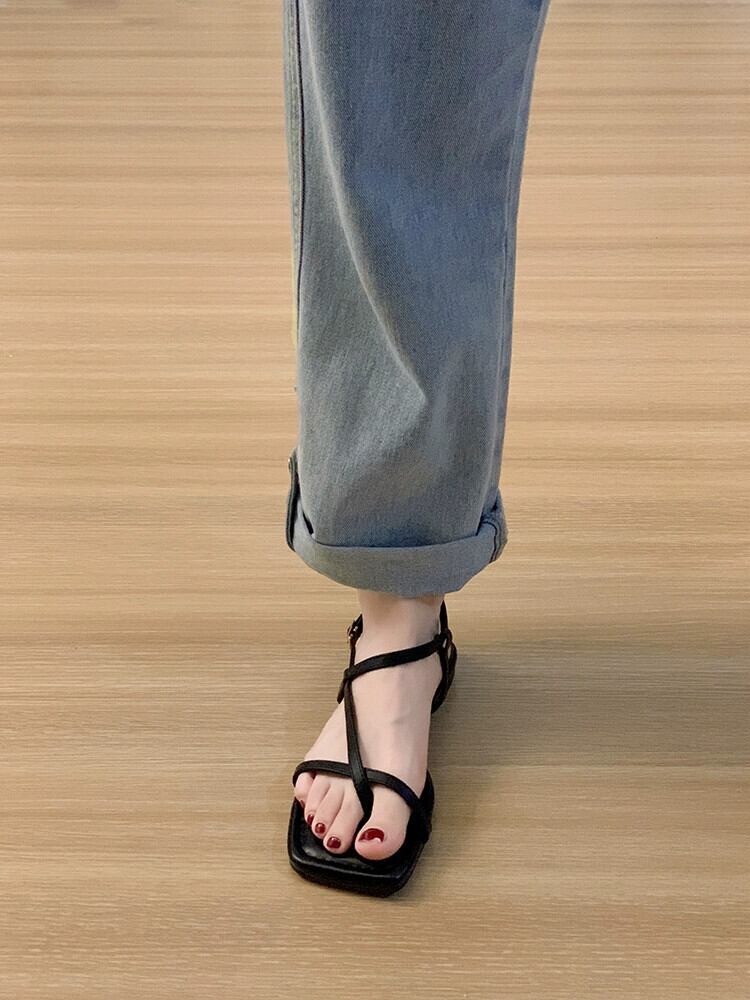 ローマサンダル女性の 2023 夏の新中空フレンチレトロスタイルローヒール comtable カジュアルビーチシューズ 靴 サマー 夏物 jxjxf60322297884