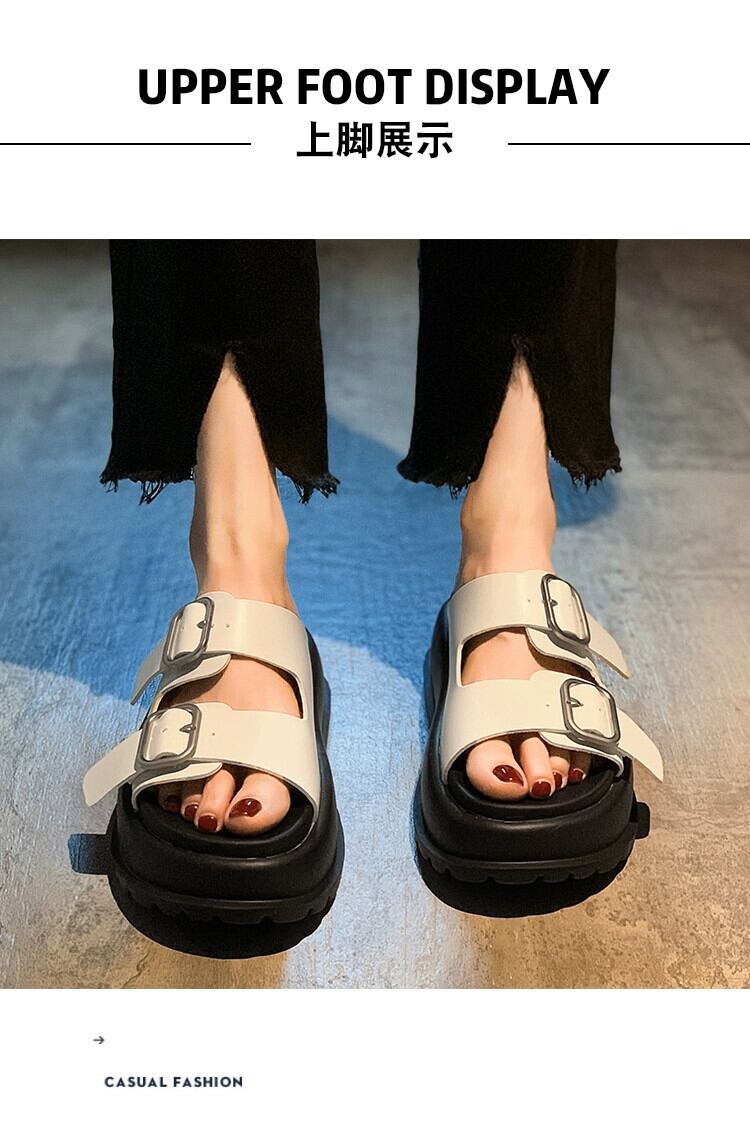お出かけスリッパレディース 2023 夏の新ファッションフレンチベルトバックルマフィン厚底カジュアルサンダル 靴 シューズ サマー 夏物 ハーネス jxjxf52258628990