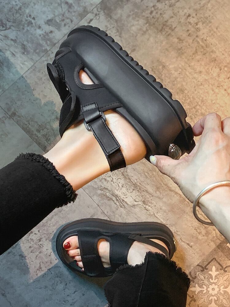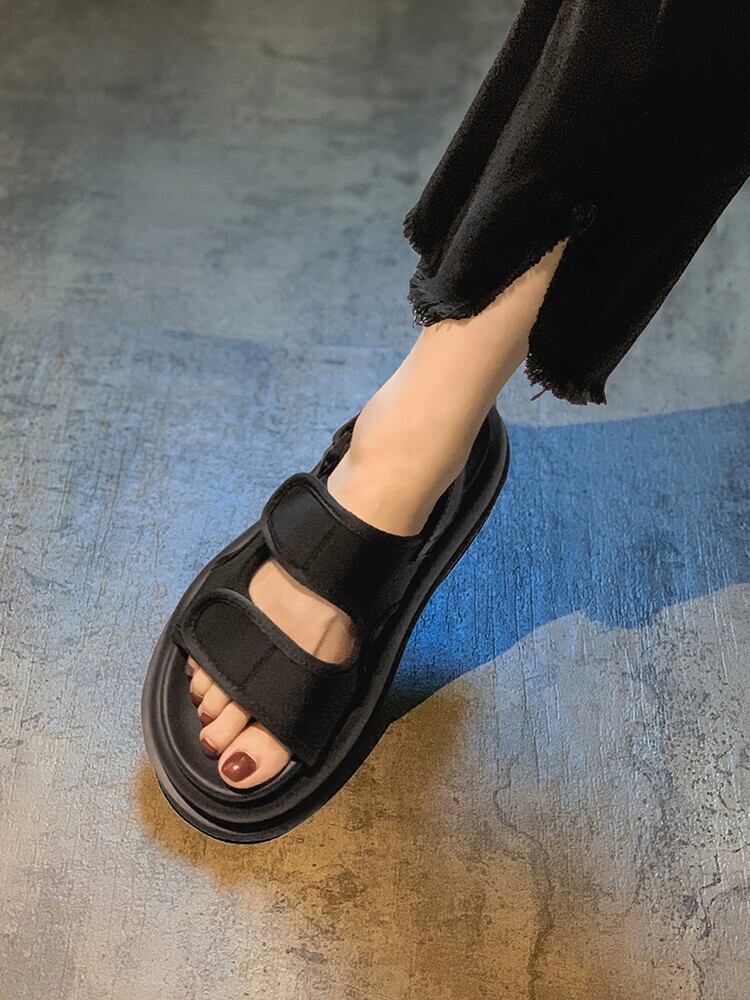 女性のサンダル 2023 夏の新シンプルなレトロな eign スタイルノンスリップオールマッチマフィン厚底カジュアルビーチシューズ 靴 サマー 夏物 jxjxf22583303689