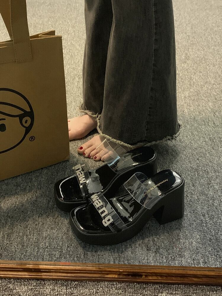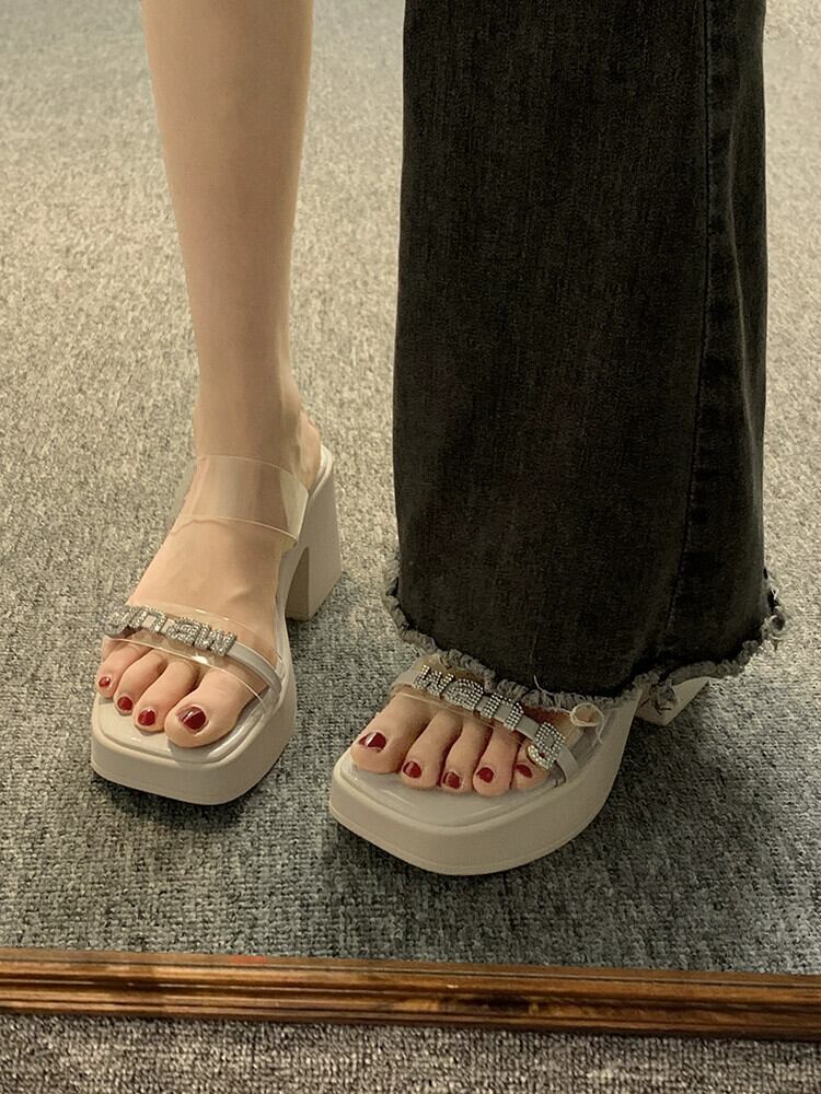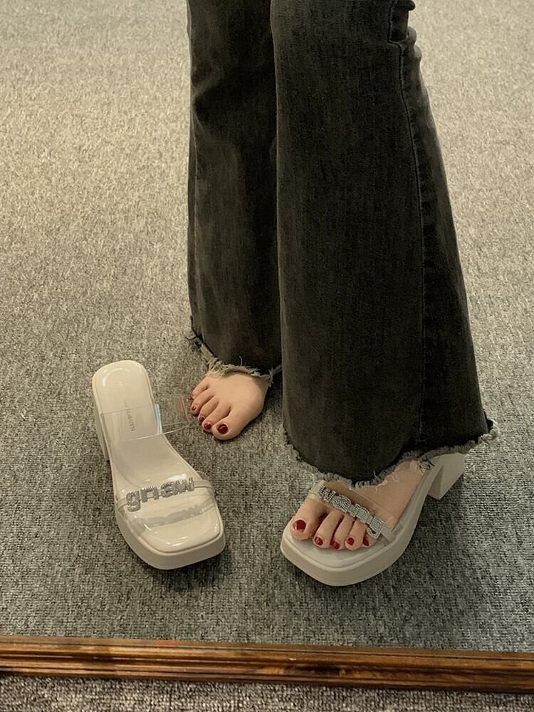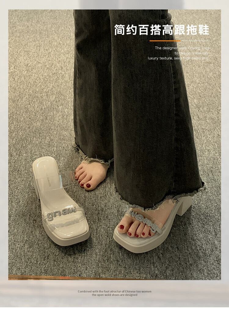 インターネットセレブスリッパレディースアウターウェア 2023 夏の新ファッションオールマッチラインストーン小さなハイヒールビーチサンダル 靴 シューズ ミュール サマー 夏物 jxjxf3614403730