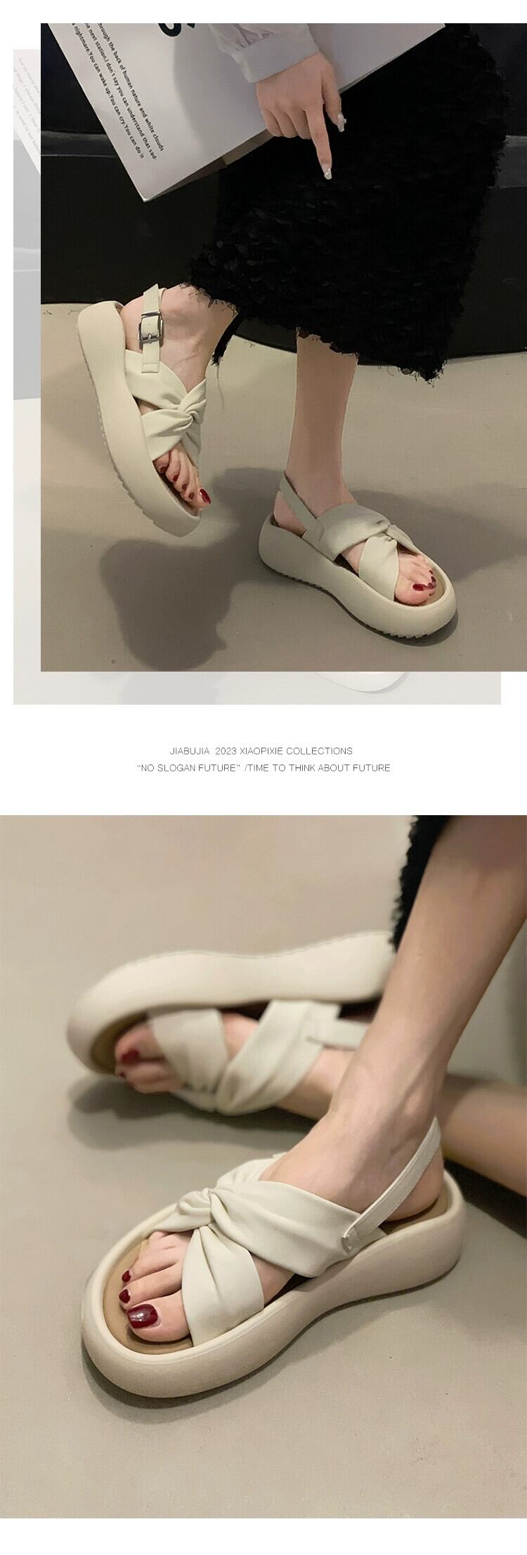 サンダル女性の夏 2023 新しいネットレッドファッションレトロベルトバックル comtable 厚底ノンスリップビーチシューズ潮 靴 サマー 夏物 ハーネス jxjxf52973236833