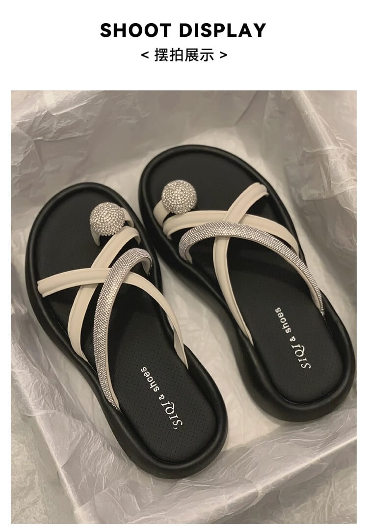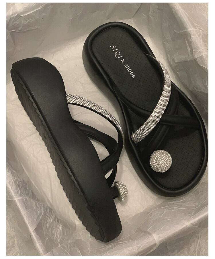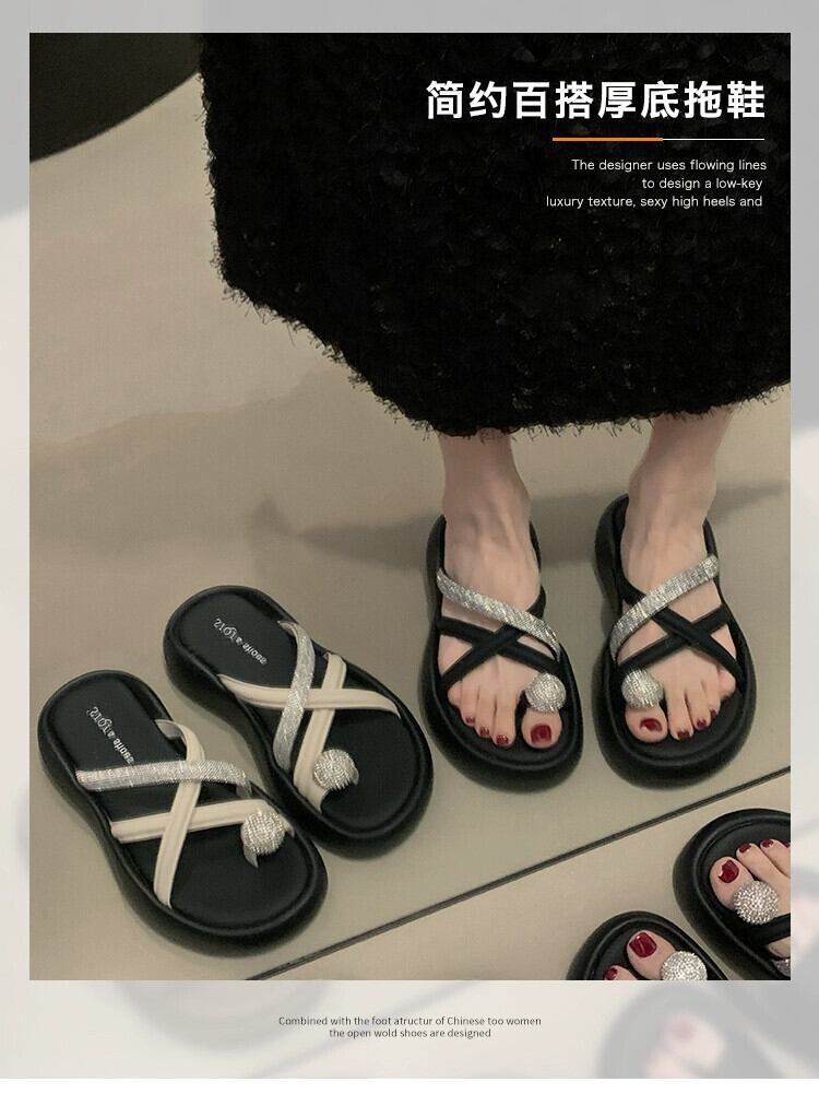 インターネットセレブスリッパ女性の 2023 夏の新ファッションウエスタンラインストーン小さな厚底ノンスリップスリッポンサンダルとスリッパ ミュール 靴 シューズ サマー 夏物 jxjxf13569969455