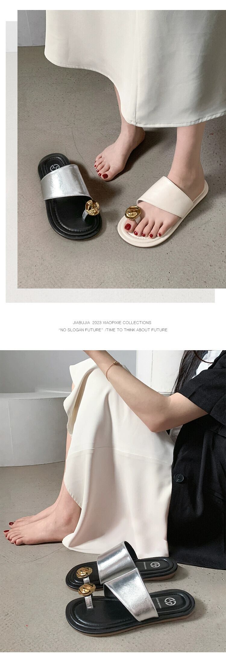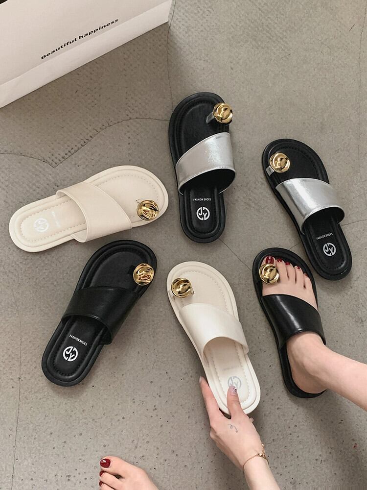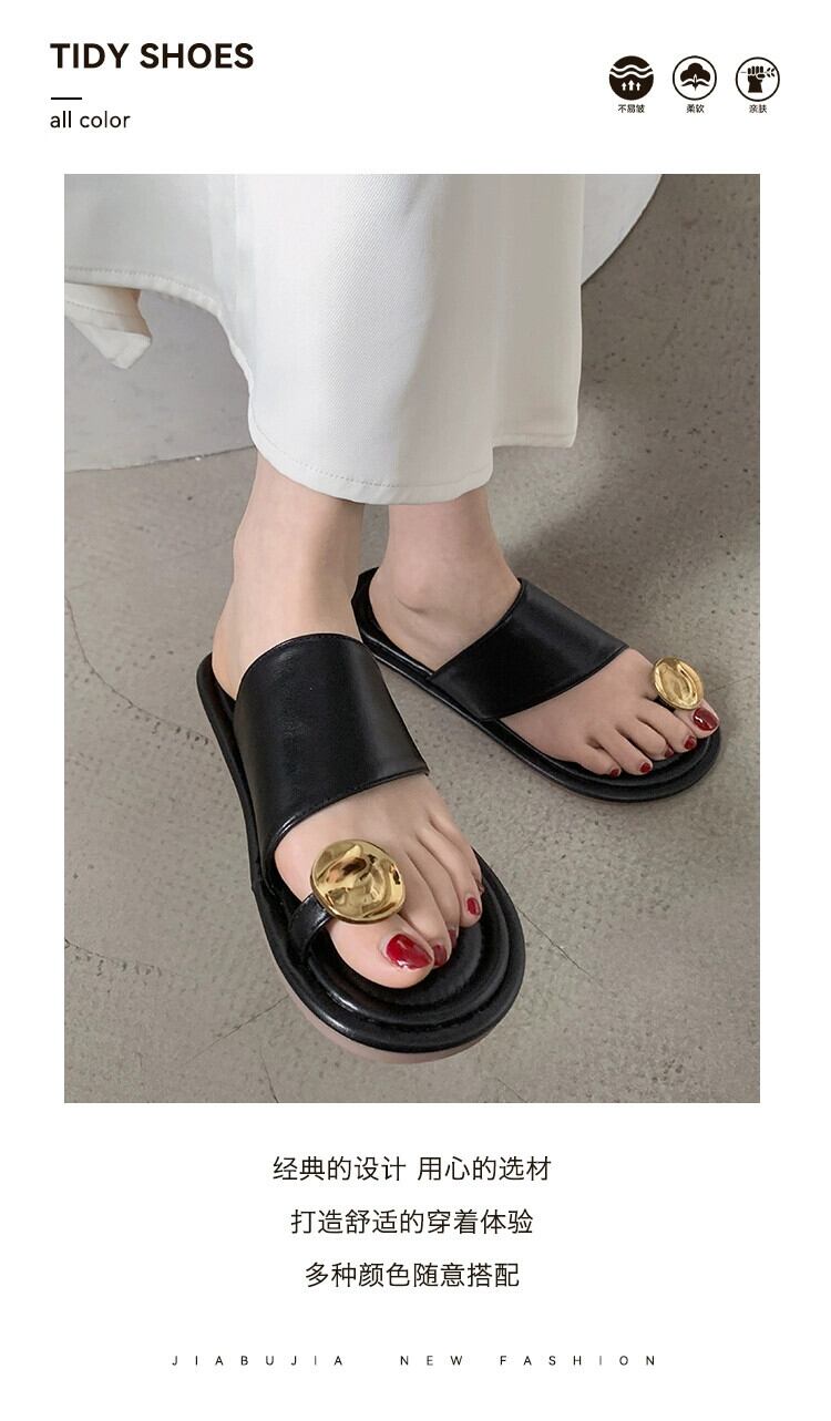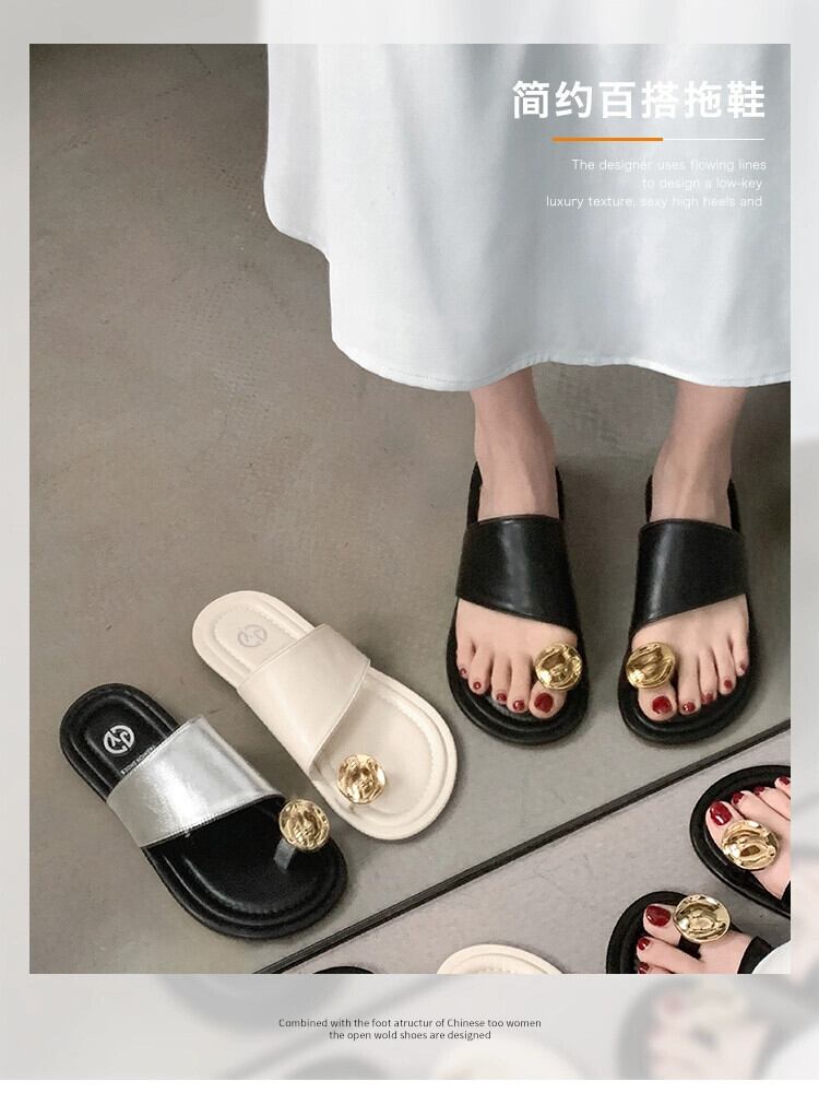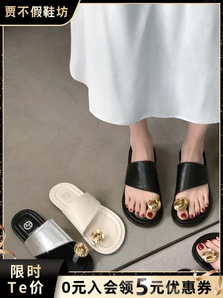 アウタースリッパレディース 2023 夏の新フレンチシンプルな eign スタイル金属 comtable ソフトボトムサンダルとスリッパ ミュール 靴 シューズ サマー 夏物 jxjxf3488073633