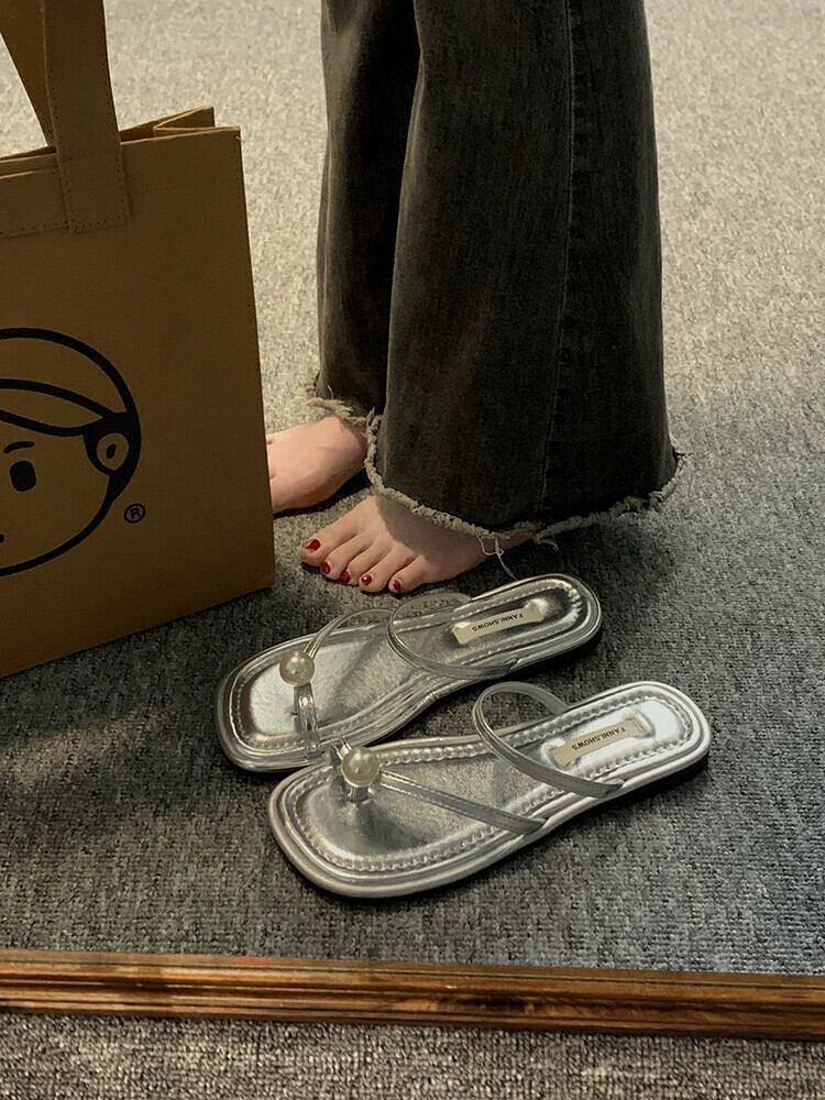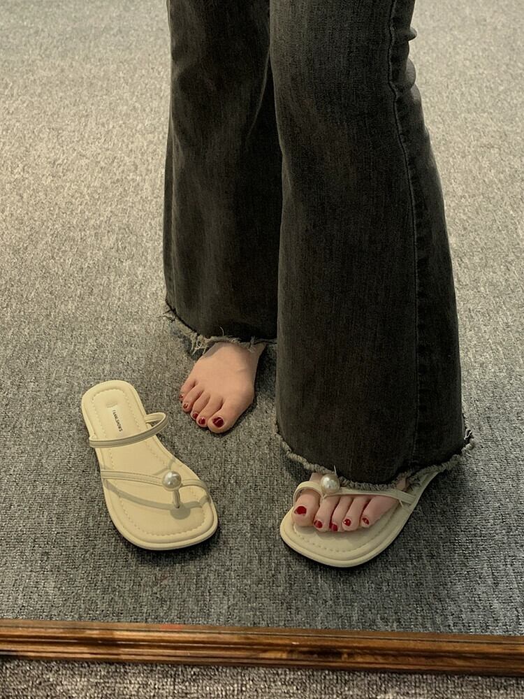 インターネットセレブスリッパレディースアウター 2023 夏の新ファッションオールマッチレトロパール平底ウエスタンスタイルスリッポンサンダル ミュール 靴 シューズ サマー 夏物 真珠 jxjxf88555552332