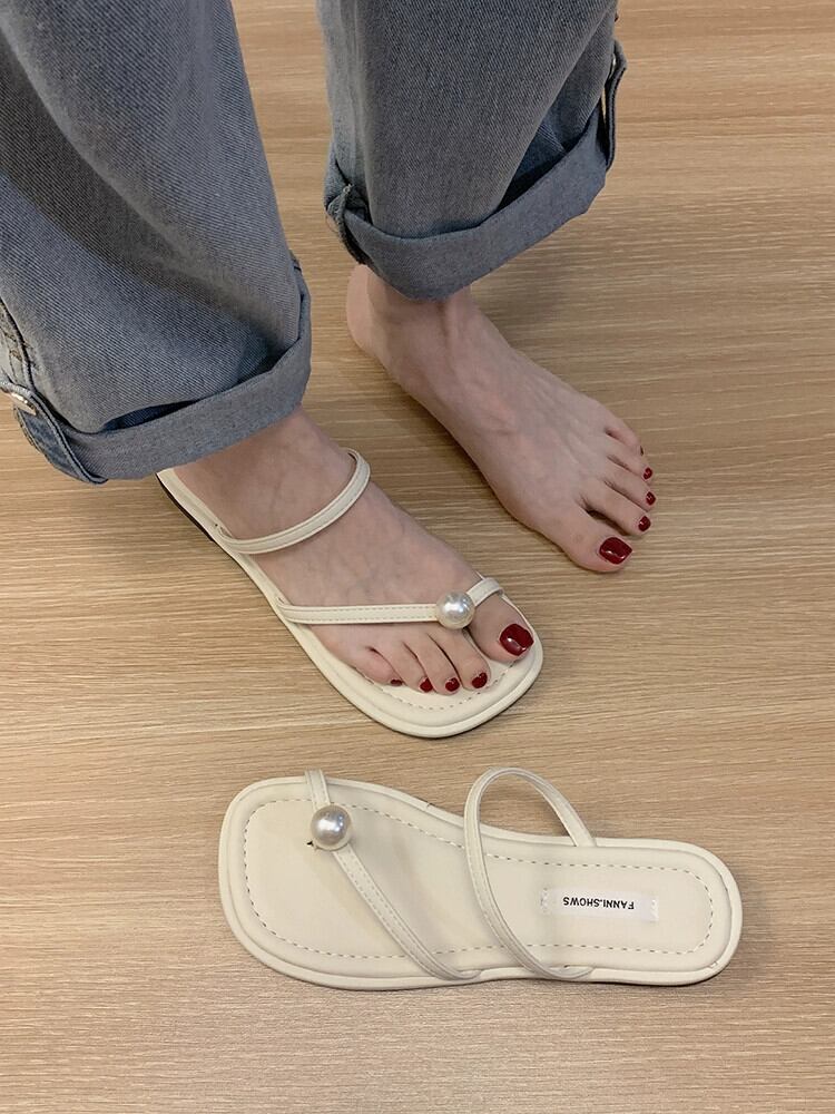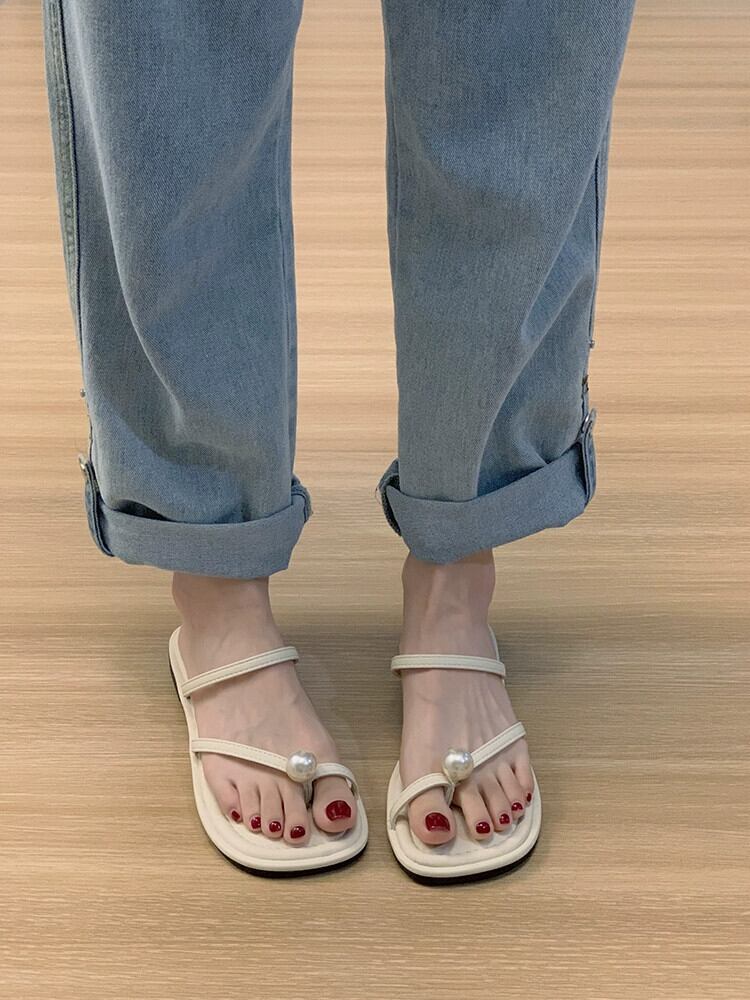 つま先スリッパレディースアウターウェア 2023 夏の新フレンチスタイルパールアインスタイル comtable ソフトボトムピンチサンダルとスリッパのセット ミュール 靴 シューズ サマー 夏物 真珠 jxjxf25021373710