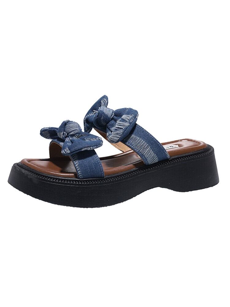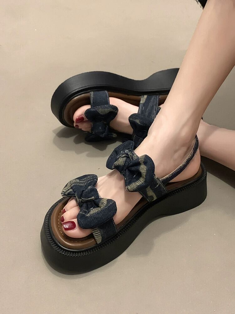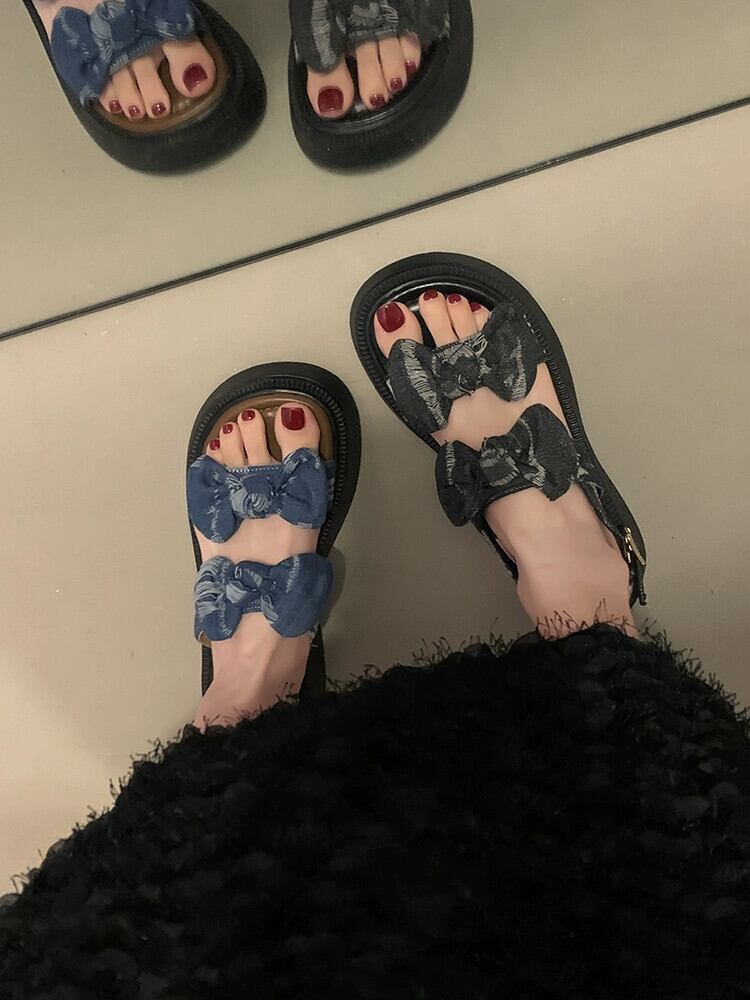 サンダル女性の 2023 夏の新ファッションオールマッチ eign スタイルの弓小さな厚底滑り止めビーチシューズ潮 靴 リボン サマー 夏物 jxjxf46667176039