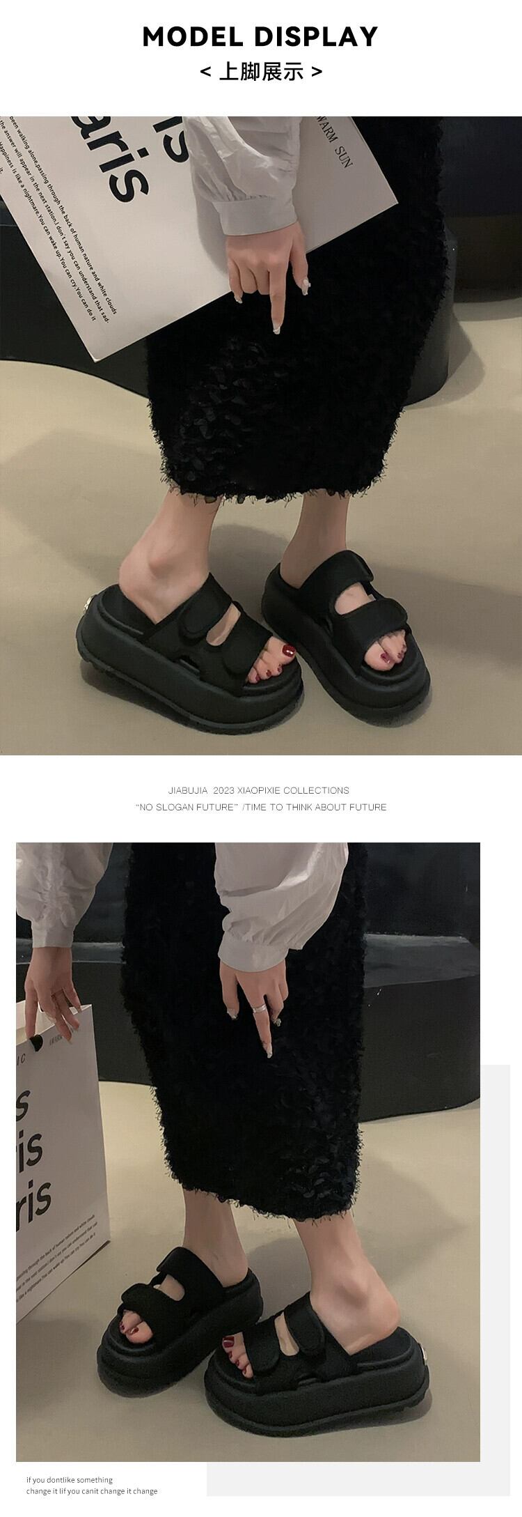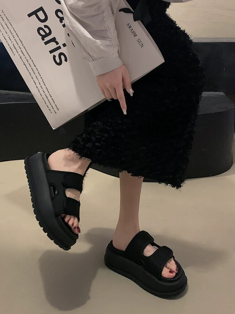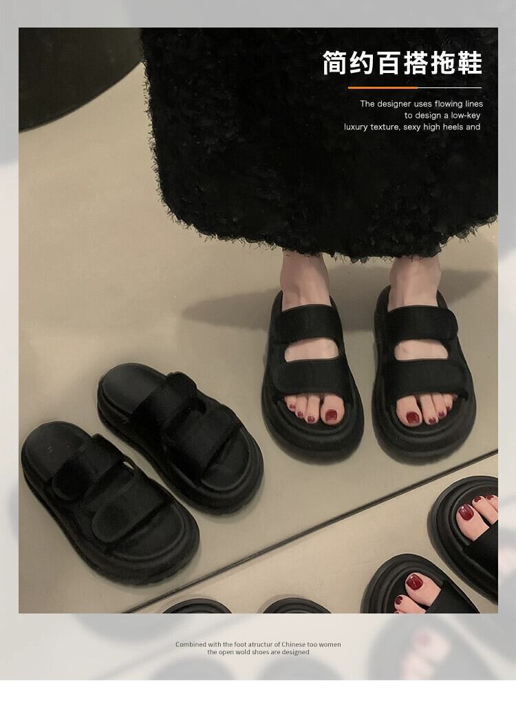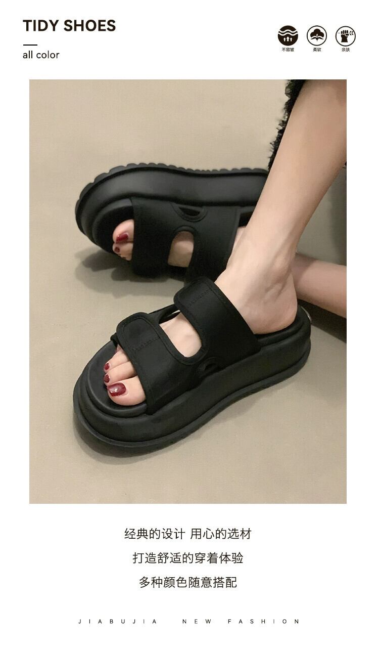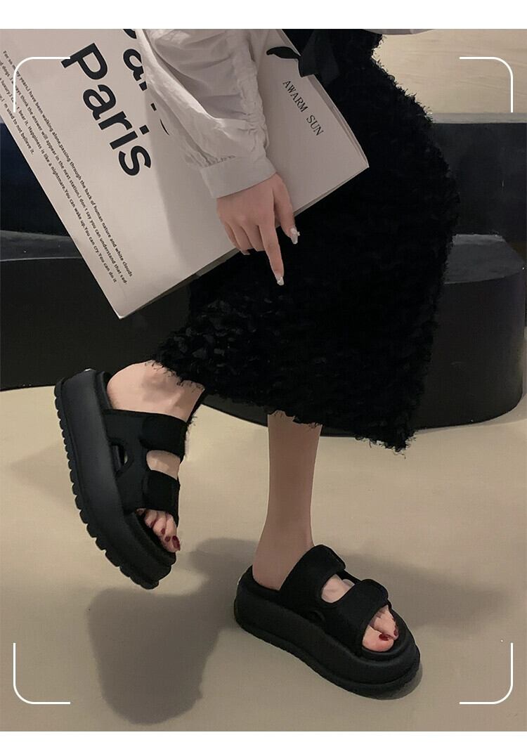 一言スリッパ レディース アウター 2023 夏新作 シンプル レトロ ファッション マフィン 厚底 ビーチサンダル スリッパ ミュール 靴 シューズ サマー 夏物 jxjxf10923820445