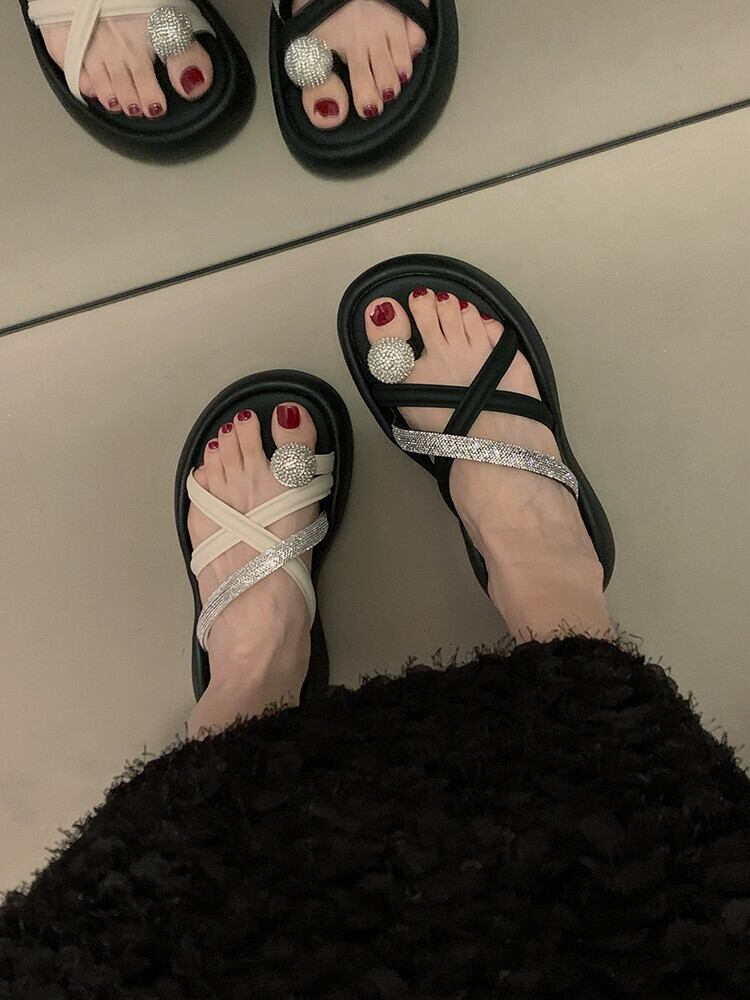 2023年夏のアウターレディーススリッパ新しいネットレッドスーパーファイヤーインスタイルオールマッチラインストーン厚底コンタブルサンダルとスリッパ潮 ミュール 靴 シューズ サマー 夏物 jxjxf69169132174