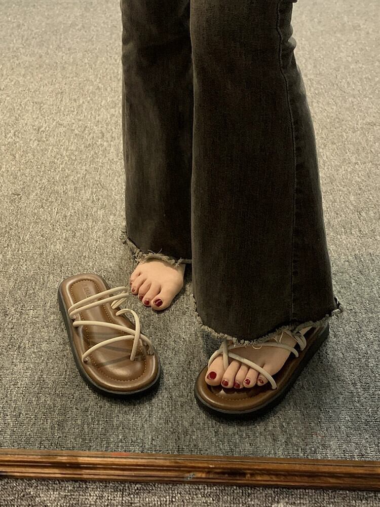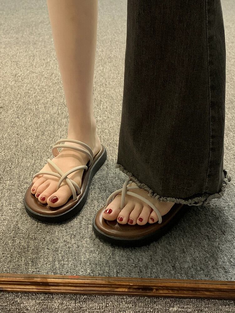 女性の外出つま先スリッパ 2023 夏の新シンプルなレトロ織物 comtable ソフトボトムカジュアルサンダルとスリッパ ミュール 靴 シューズ サマー 夏物 jxjxf26237543514