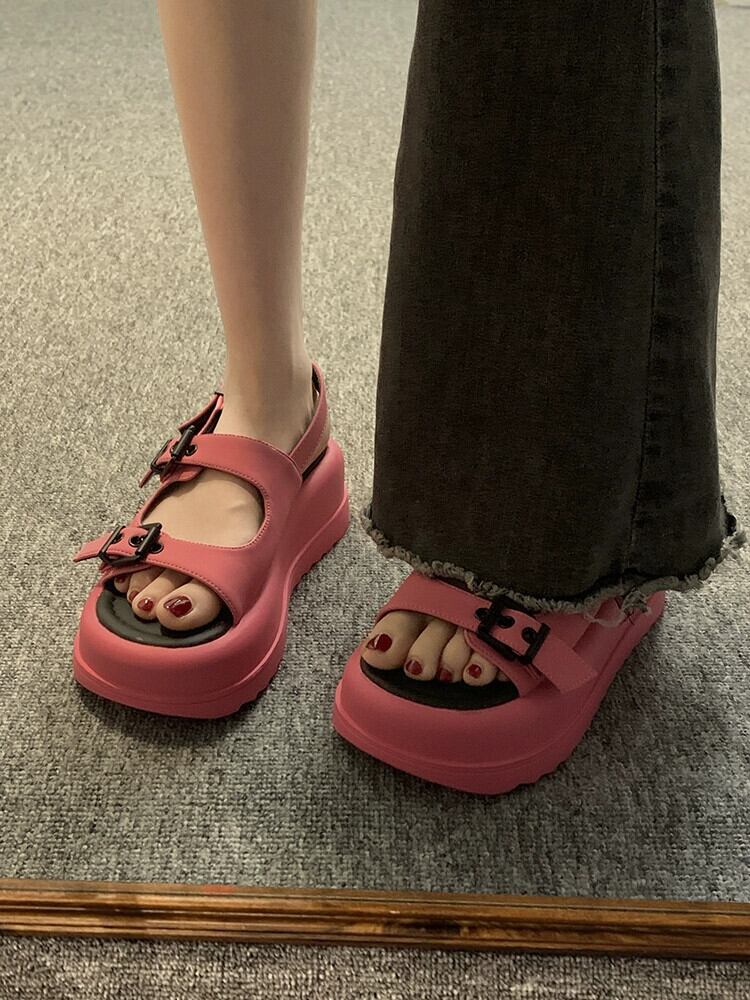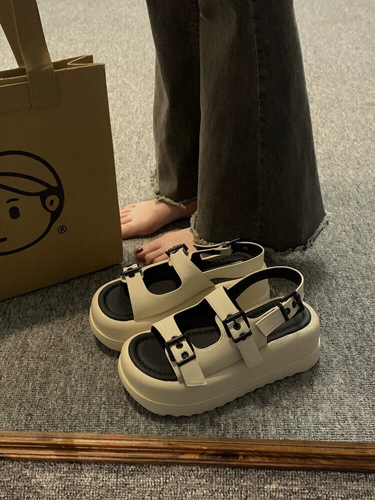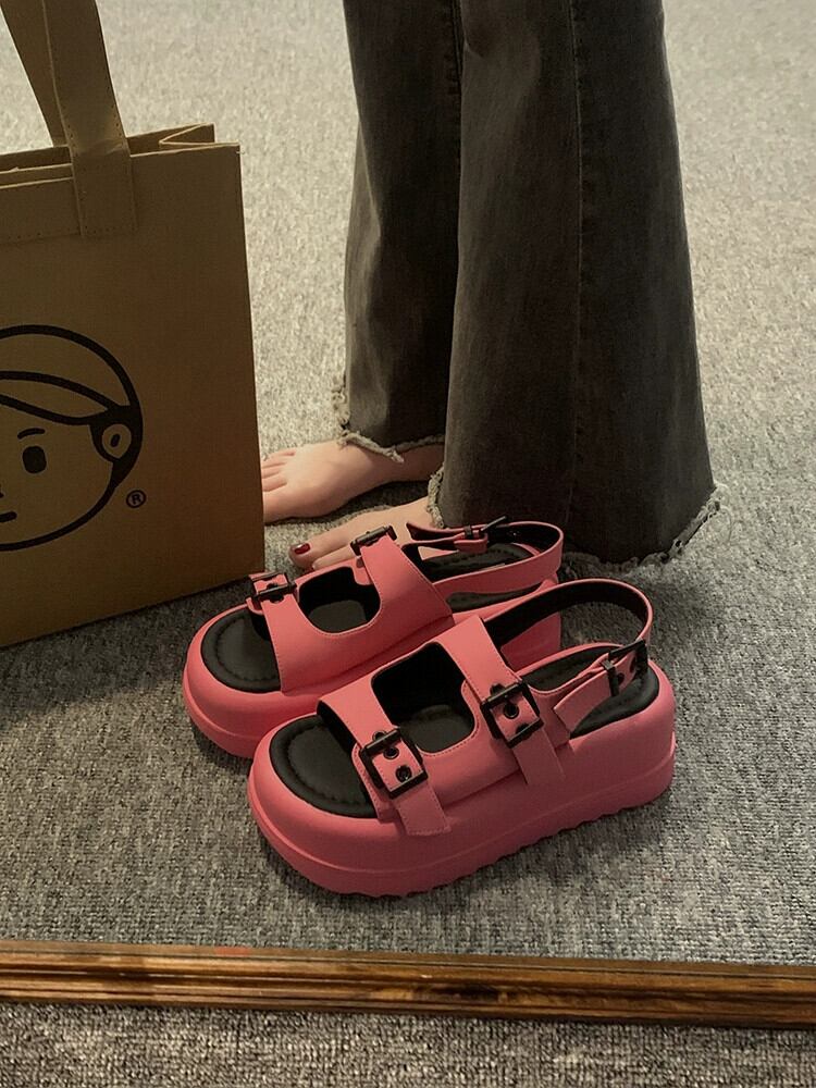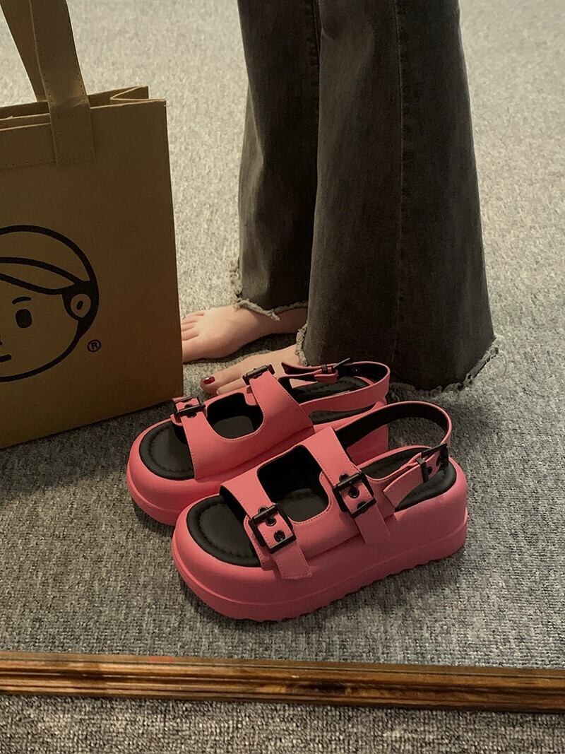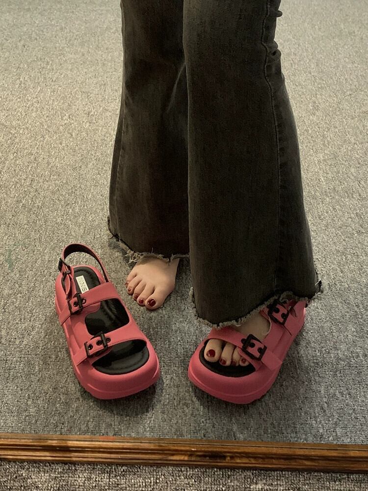 レディースサンダル 2023 夏の新ファッションオールマッチレトロベルトバックル小型厚底滑り止めビーチサンダル 靴 シューズ サマー 夏物 ハーネス jxjxf10922167951
