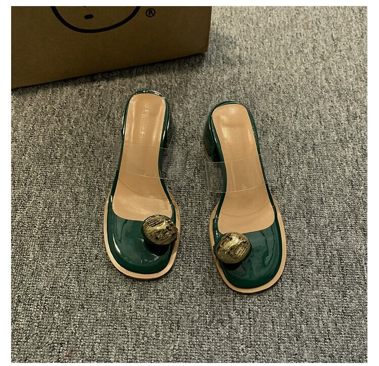 2023 年の夏の女性のサンダルとスリッパのアウターウェアの新しいファッションオールマッチレトロなスタイルの厚いヒールの金属つま先のスリッパ ミュール 靴 シューズ サマー 夏物 jxjxf45844139600